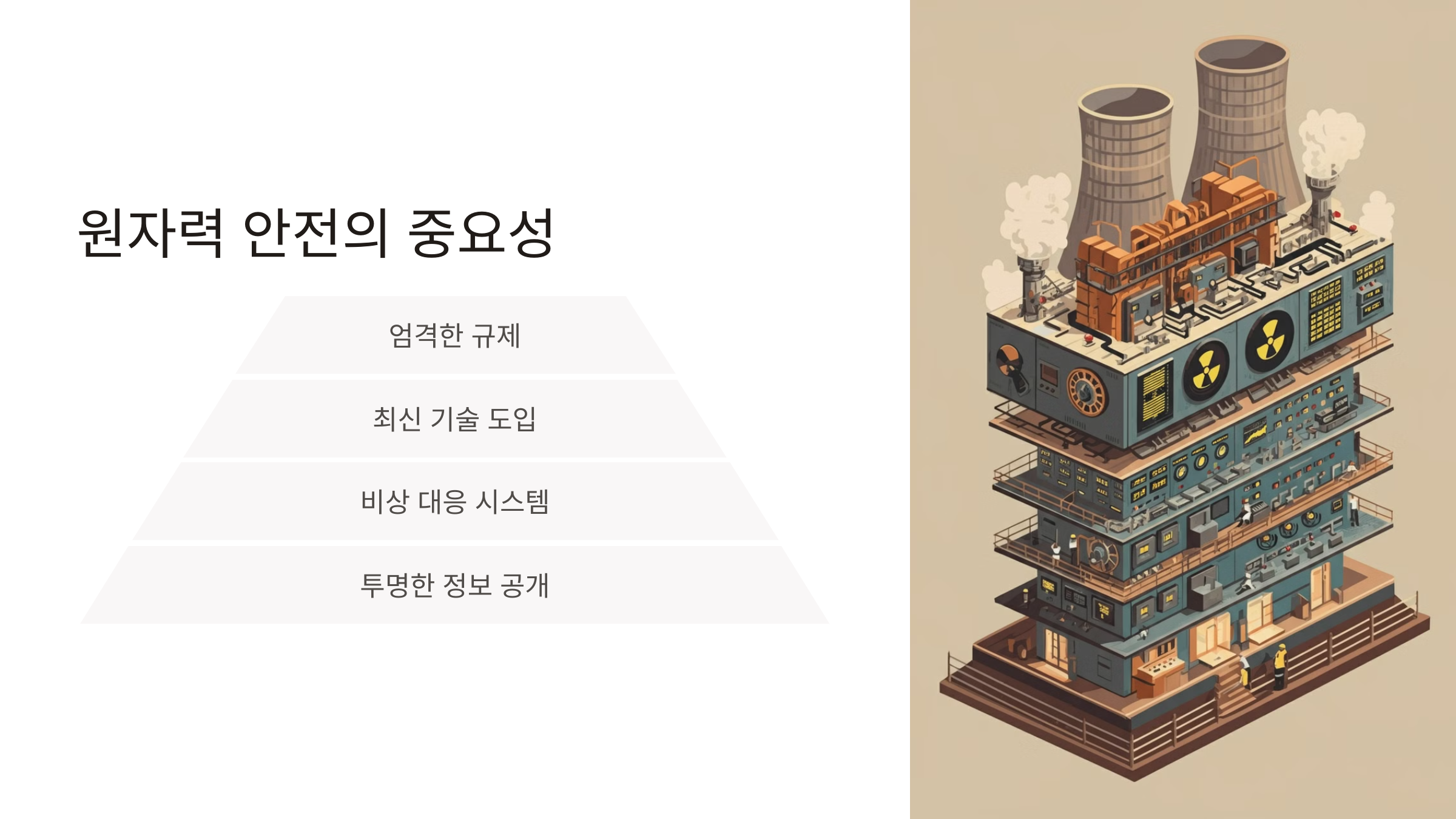 최신 기술과 철저한 관리 시스템을 통해 원자력의 안전성을 높이고 있습니다. 다만, 사고 가능성을 완전히 배제할 수 없기 때문에 안전 관리가 필수입니다.