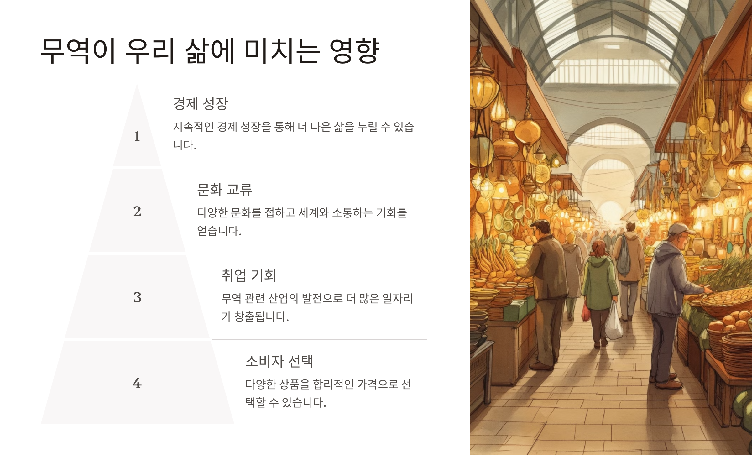 무역은 단순한 상품 교환이 아니라, 우리의 삶 전반에 깊은 영향을 미칩니다.