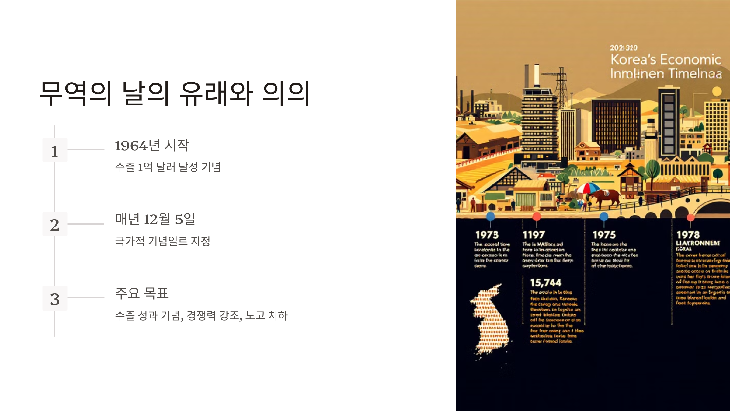 한국은 1960년대 초반, 농업 중심의 경제에서 수출 중심의 경제로 전환하며 눈부신 성장을 이루어냈습니다.