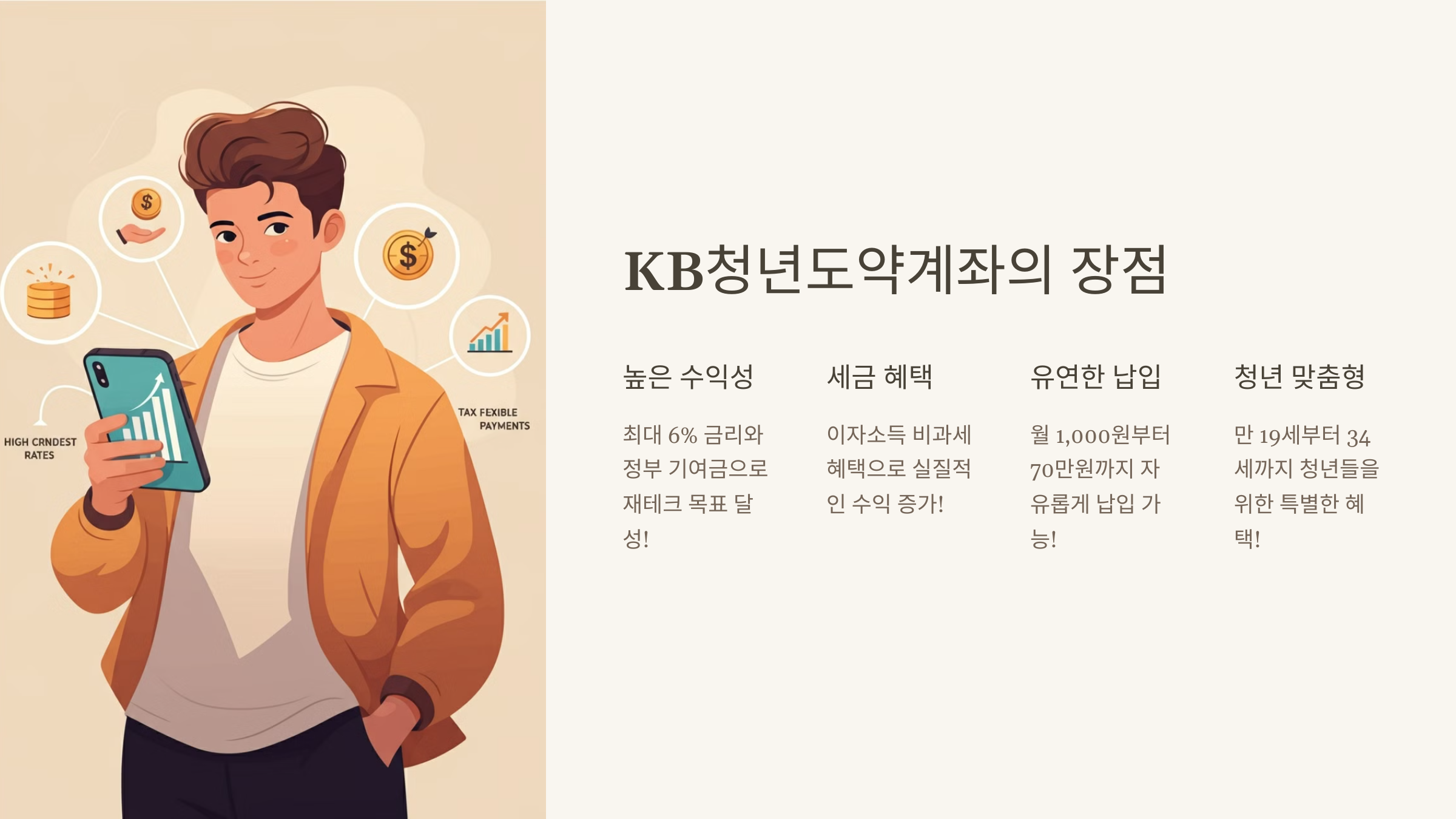 KB국민은행의 KB청년도약계좌는 19세에서 34세 사이의 청년들이 자산을 효과적으로 형성할 수 있도록 지원하는 금융 상품입니다. 2024년에는 이 계좌의 혜택이 더욱 강화되어 많은 청년들의 관심을 받고 있습니다.