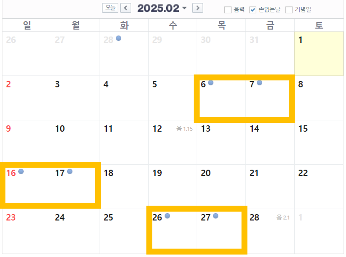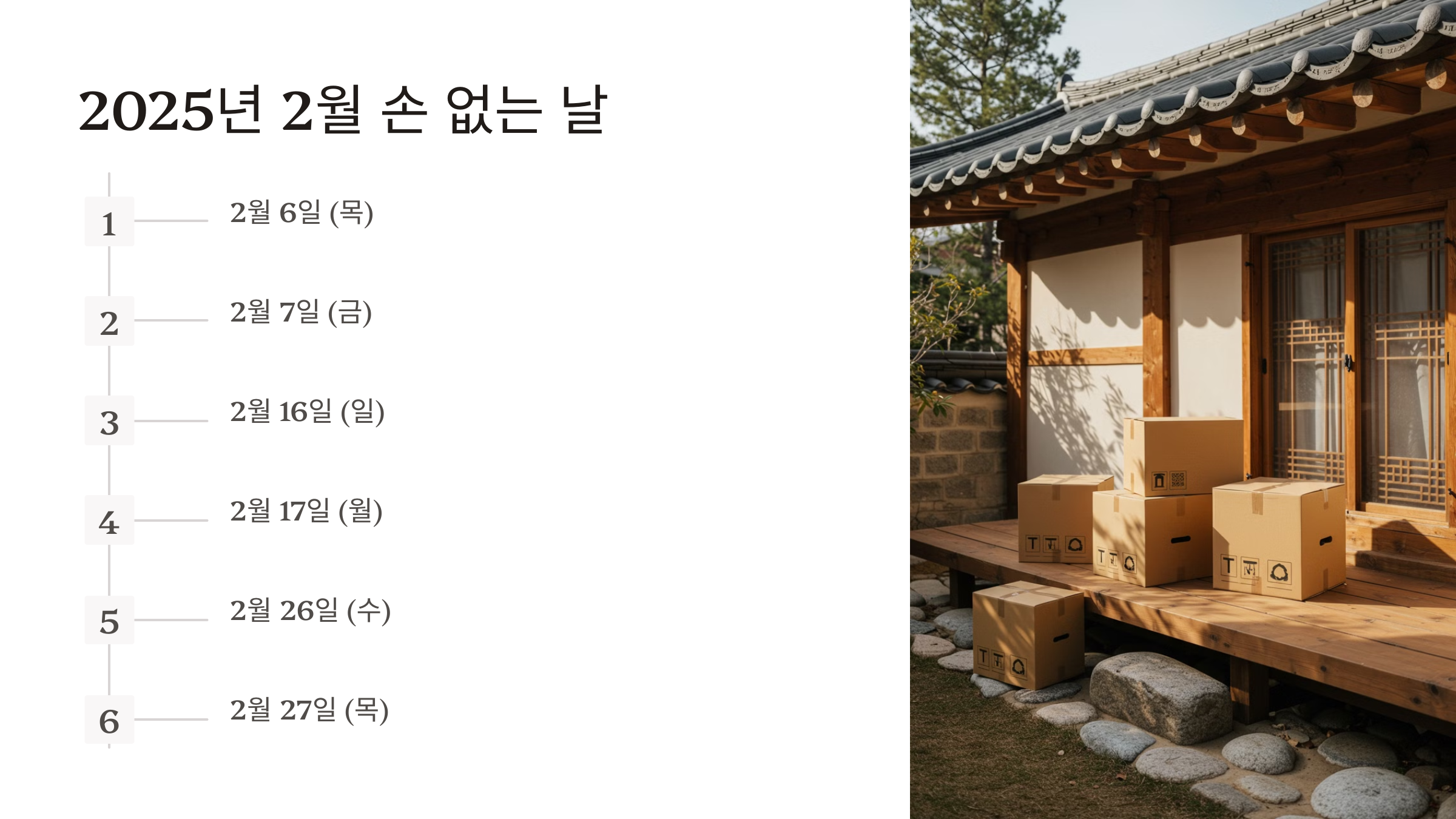2025년 2월의 손 없는 날은 다음과 같습니다: