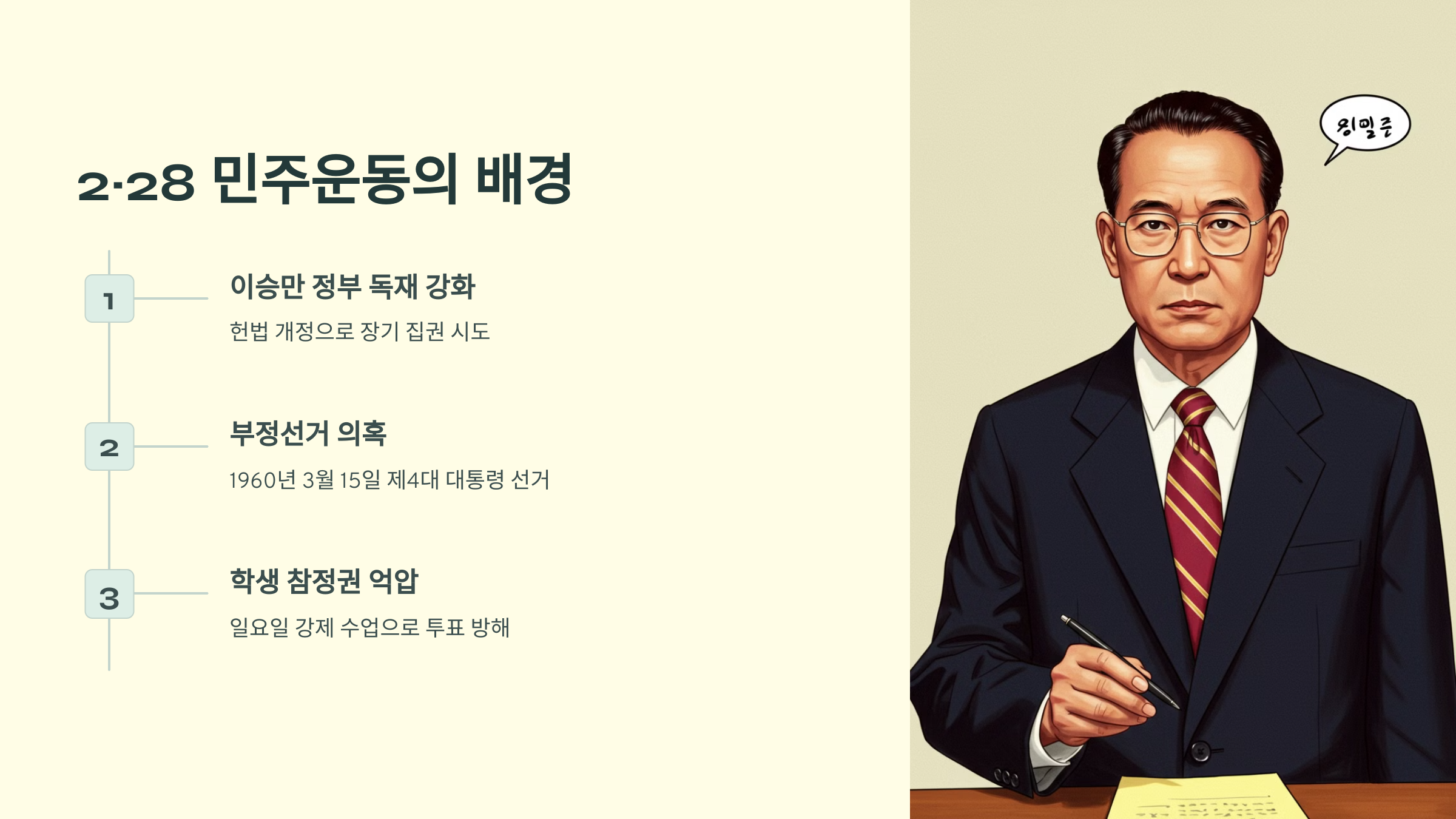 오늘은 2·28 민주운동의 배경, 전개 과정, 의미, 그리고 현대적 교훈에 대해 자세히 알아보겠습니다.