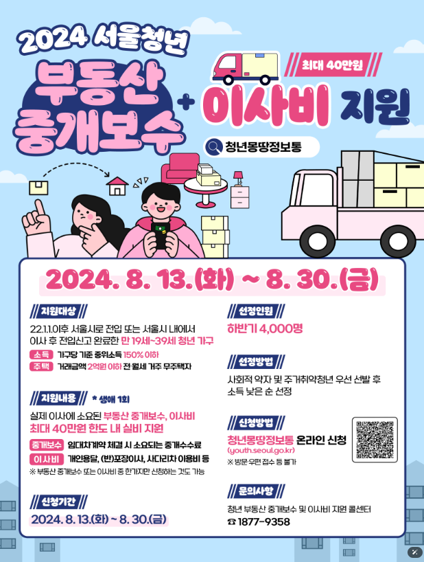 2024년 하반기 서울 청년 부동산 중개보수 및 이사비 지원 : 나도 40만원 받자