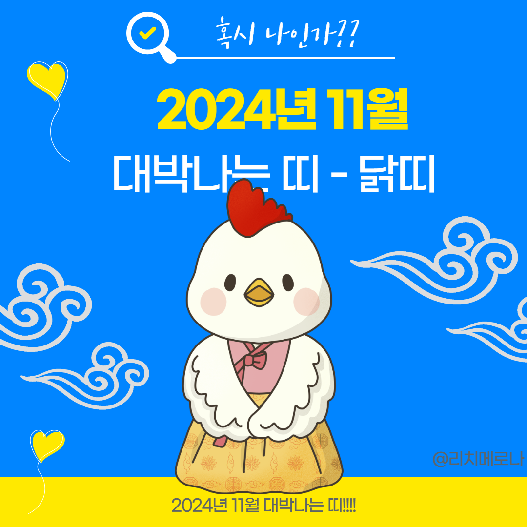 다가올 11월, 쥐띠, 소띠, 닭띠 분들이 멋진 한 달을 보내며 행운과 기회를 마음껏 누리시길 바랍니다!