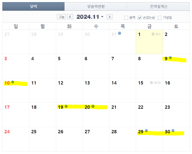2. 2024년 11월 손 없는 날은 어떻게 확인할 수 있나요?