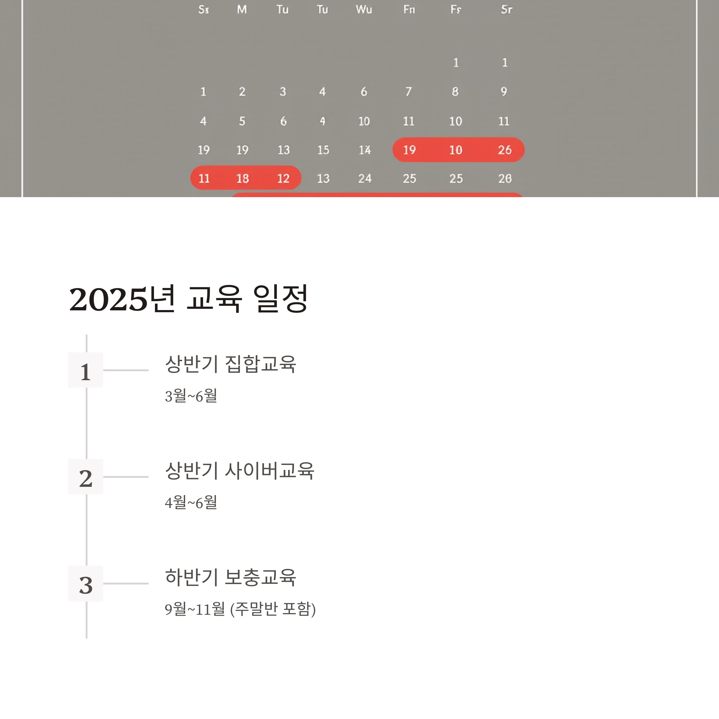 - 하반기 보충교육: 9월~11월 (주말반 운영 포함)