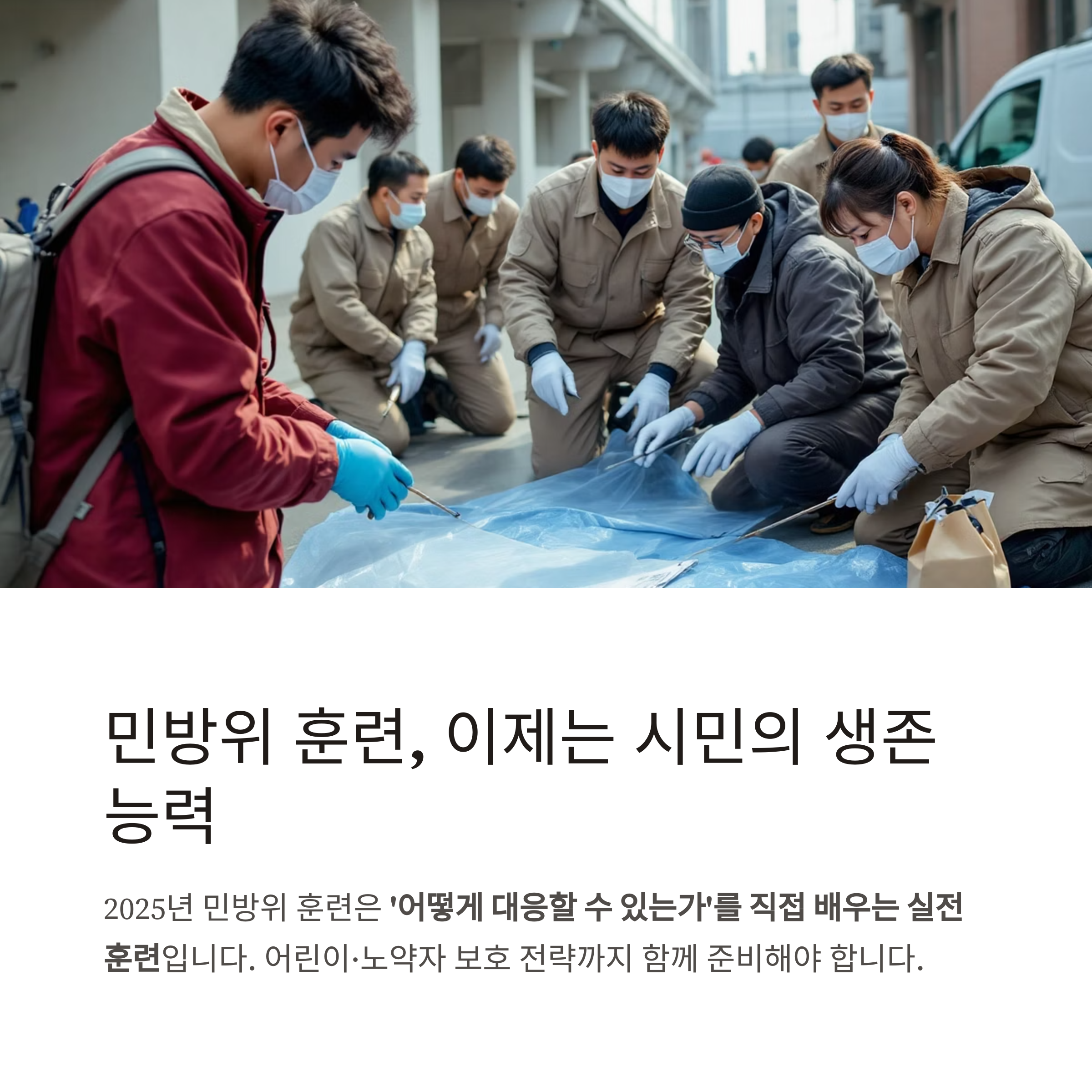 2025년 민방위 훈련은 단지 '참석했다'가 아니라 '어떻게 대응할 수 있는가'를 직접 배우는 실전 훈련입니다.