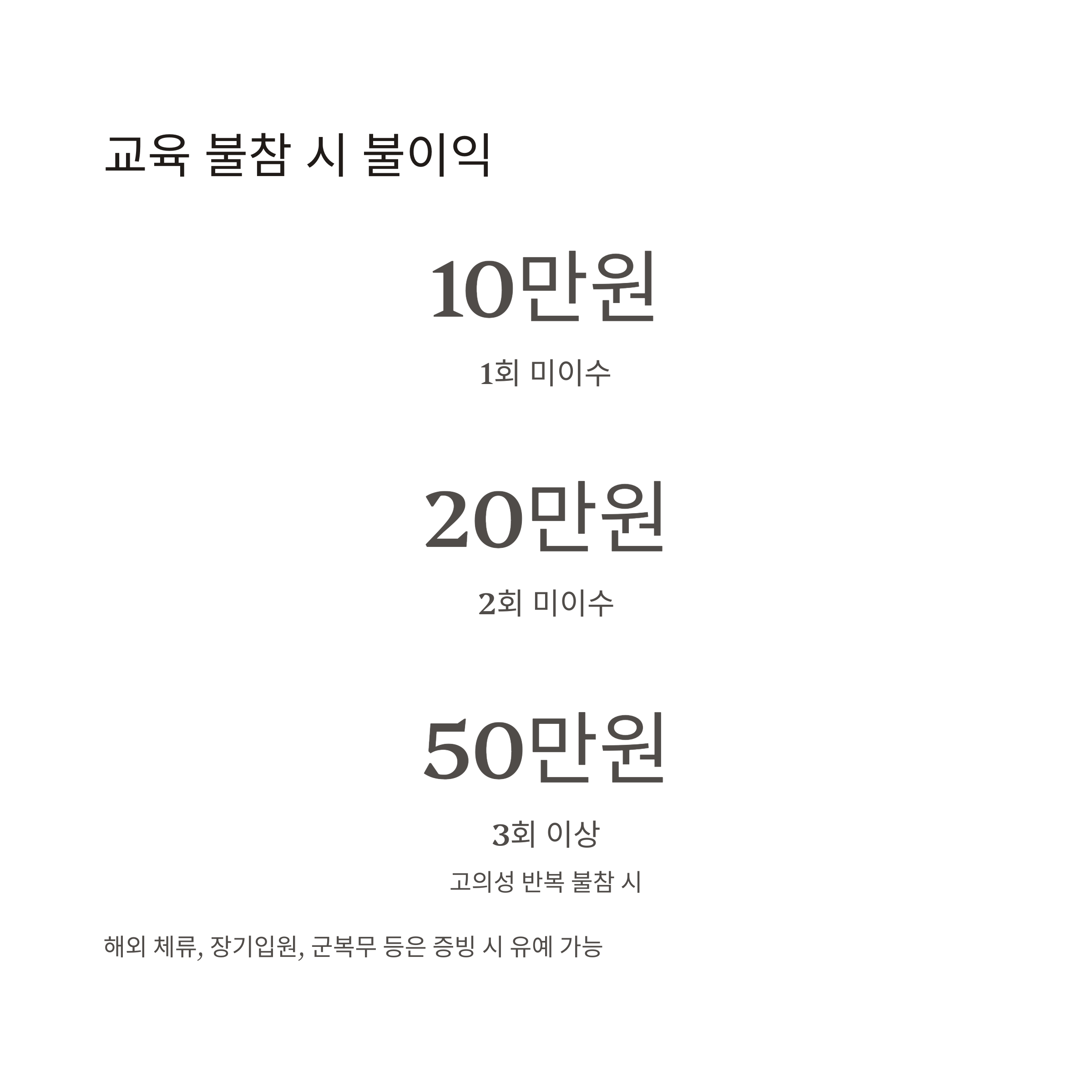 교육 불참 시 과태료 부과 (최대 50만 원)