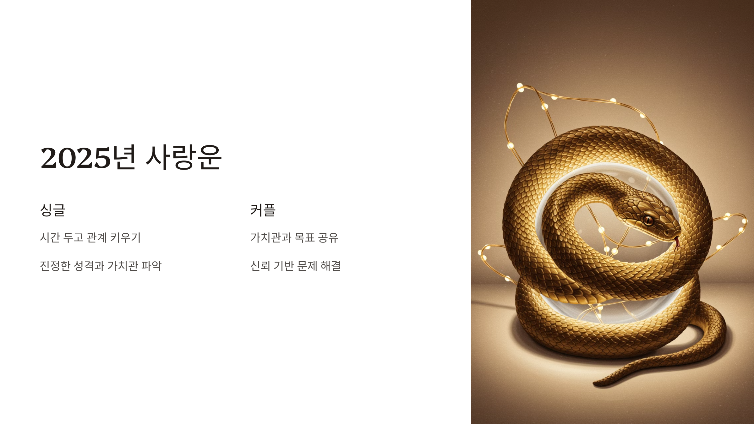 2025년 뱀띠 운세(+신년 종합 운세, 연애운, 직업운,재물운, 건강운)