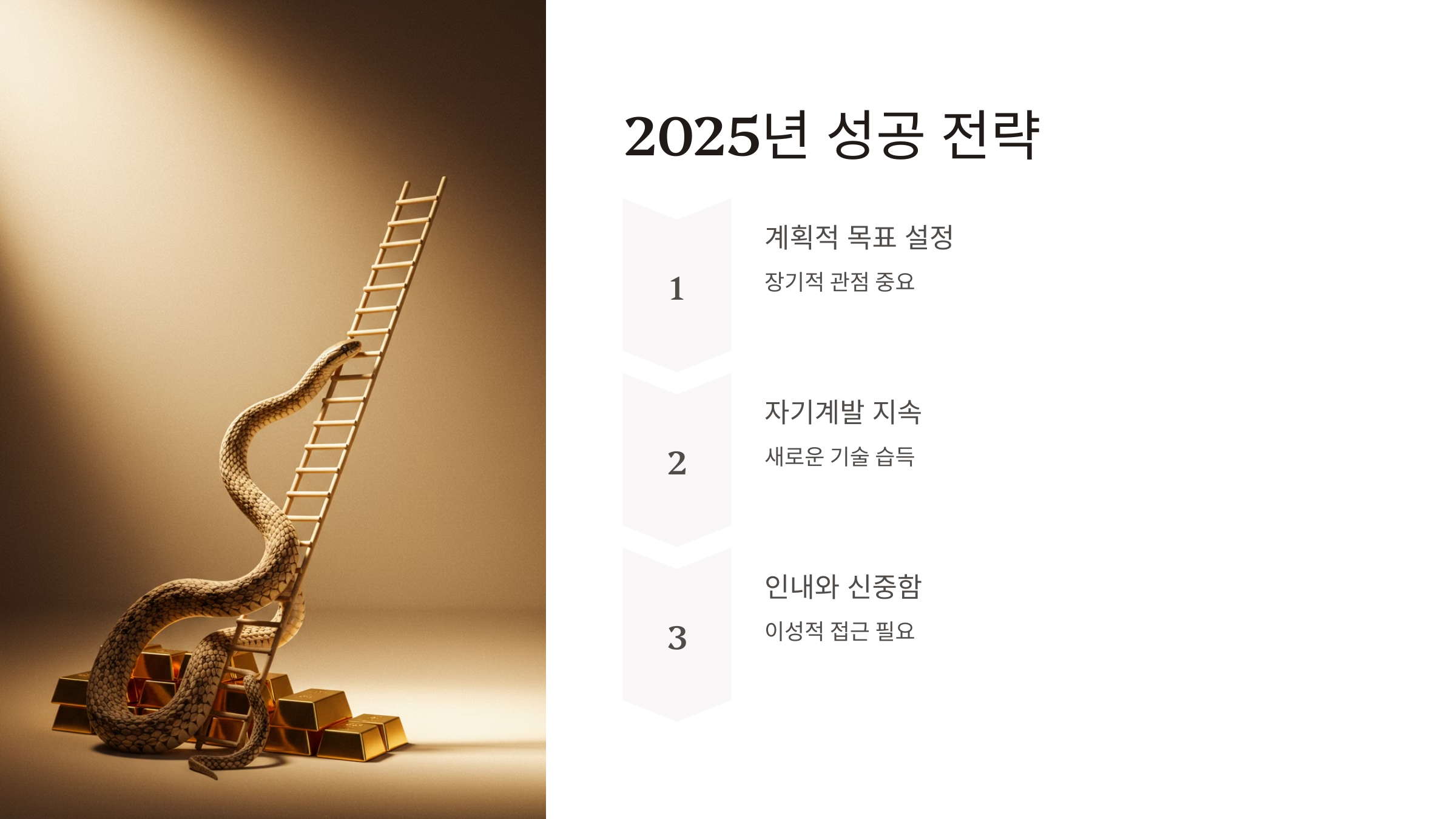 뱀의 해는 계획적이고 신중한 행동이 중요한 해입니다. 2025년 직장 및 사업운은 다음과 같은 특징을 가집니다.
