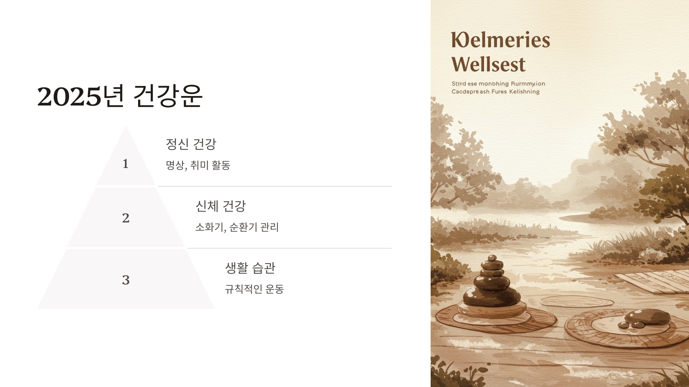 - 건강한 생활 습관: 신체적, 정신적 건강을 함께 관리하세요.