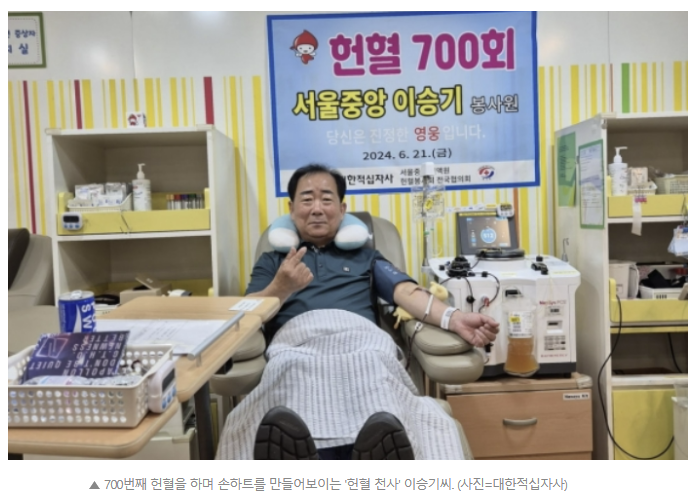 - 시민 이승기: 45년간 700회 이상의 헌혈로 많은 생명을 살린 헌혈천사로 알려져 있습니다.