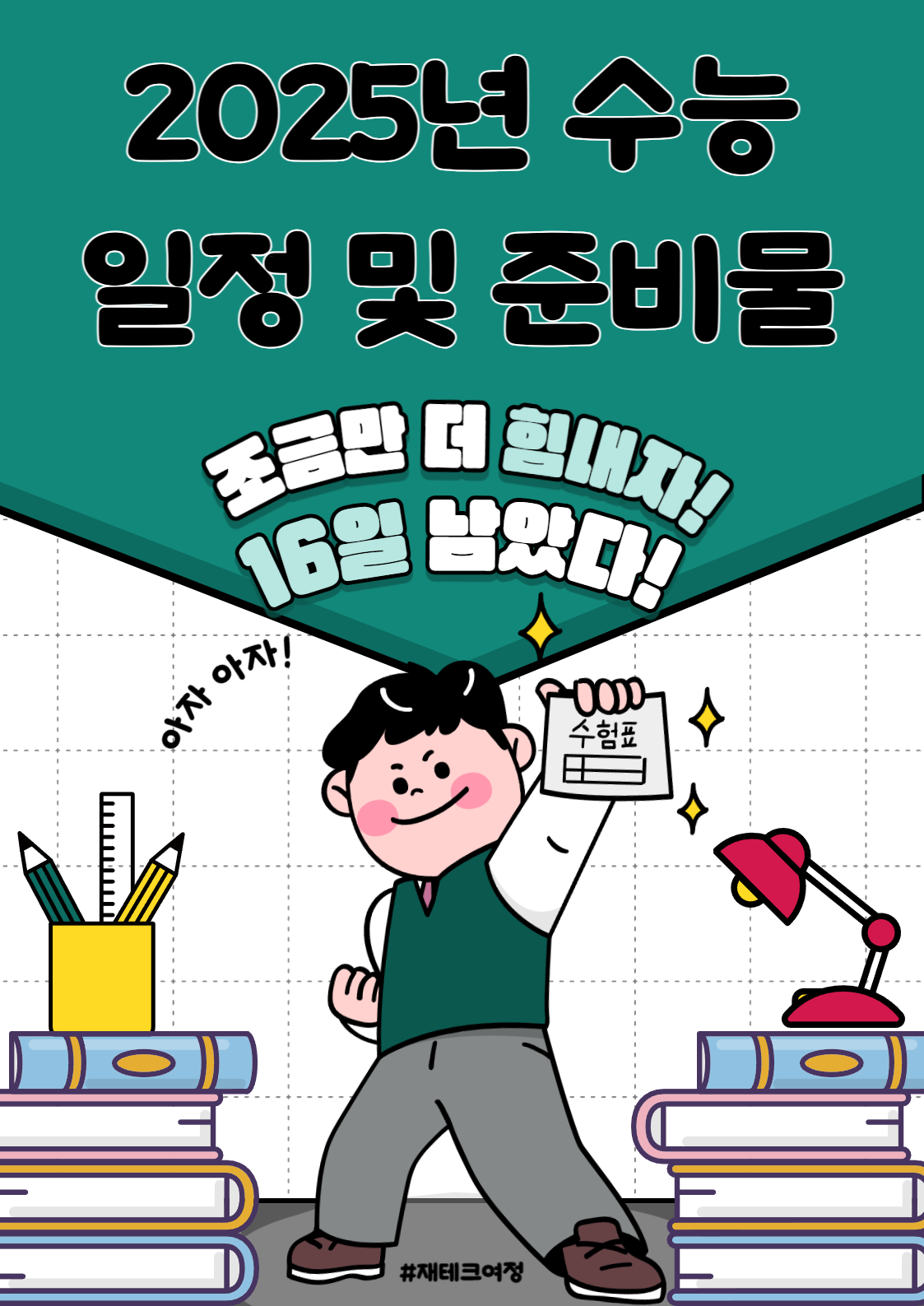 2025년 11월 13일 목요일, 전국의 고3 수험생과 재수생들이 마주하게 될 큰 날, 바로 2025년 대학수학능력시험(수능)이 진행됩니다. 모든 준비가 완벽해야 하기에 수능 당일 일정을 숙지하고, 필요한 준비물과 당일 유의 사항을 꼼꼼히 챙기는 것이 중요합니다. 이번 글에서는 수능 당일의 세부 일정과 필수 준비물, 그리고 하루를 효율적으로 보내기 위한 꿀팁을 전해드립니다.