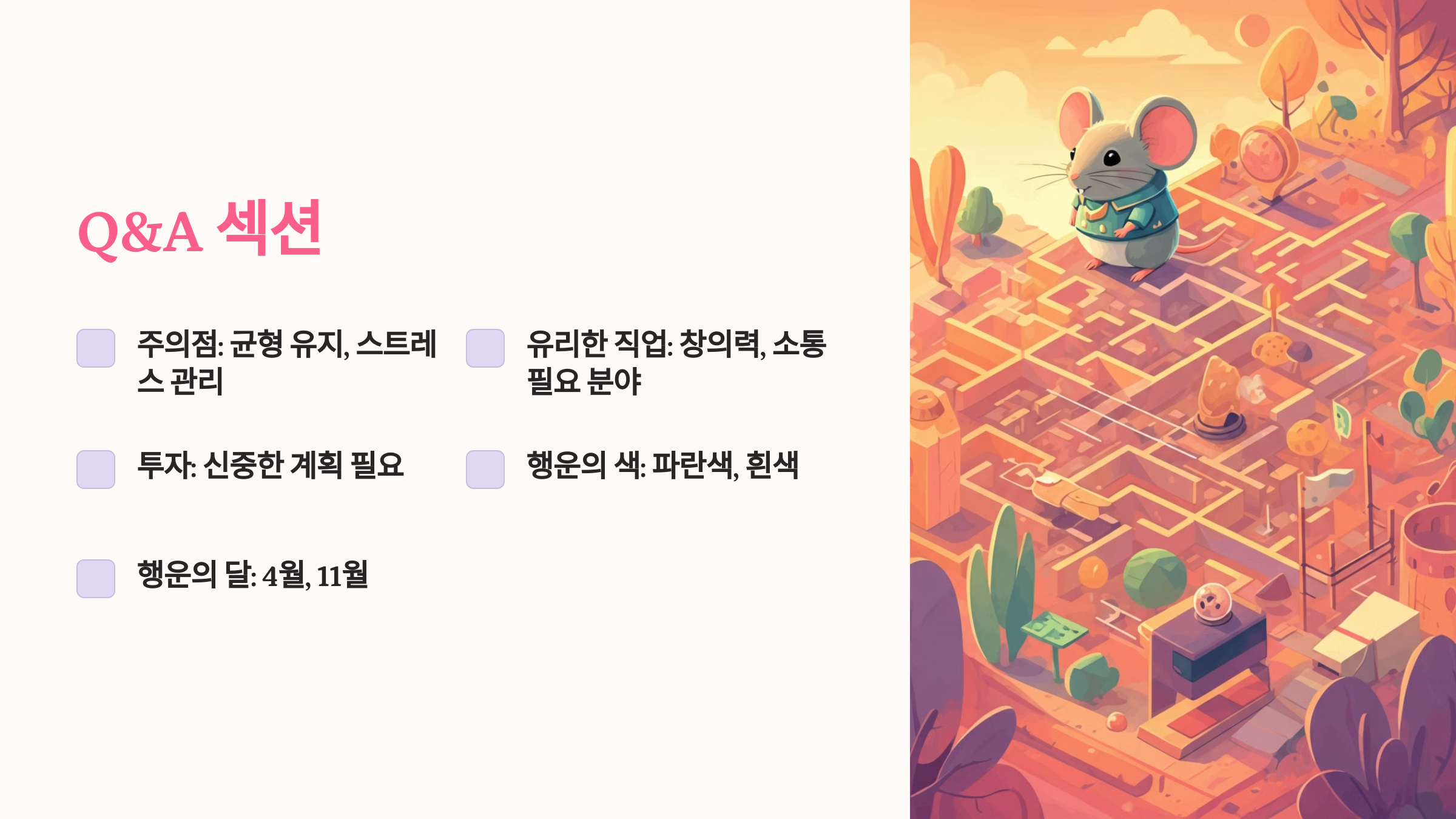 Q1. 쥐띠가 2025년 가장 주의해야 할 점은 무엇인가요?