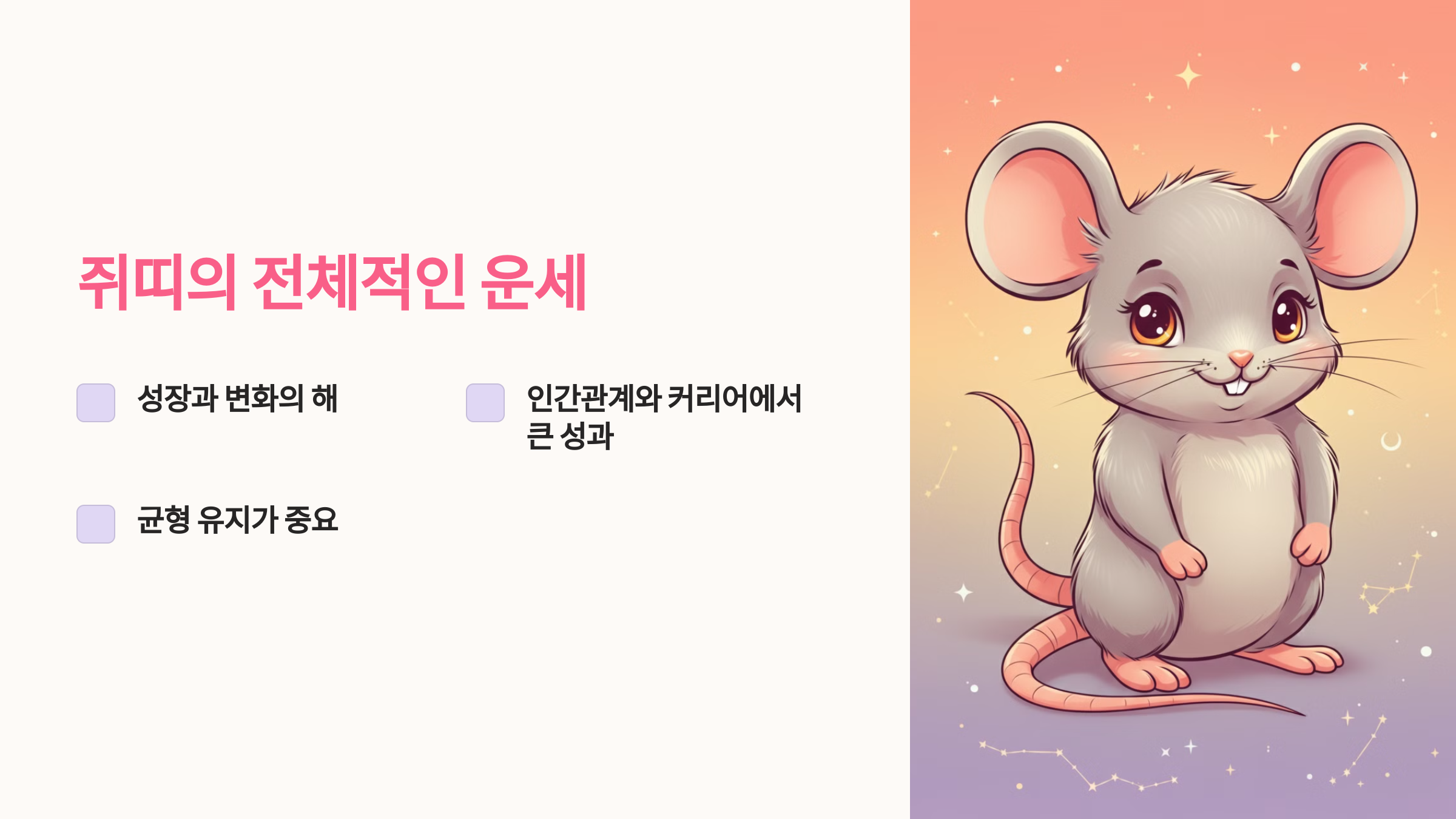 쥐띠 여러분, 2025년이 여러분의 재치와 지혜로 가득 채워지는 한 해가 되길 바랍니다! 💖