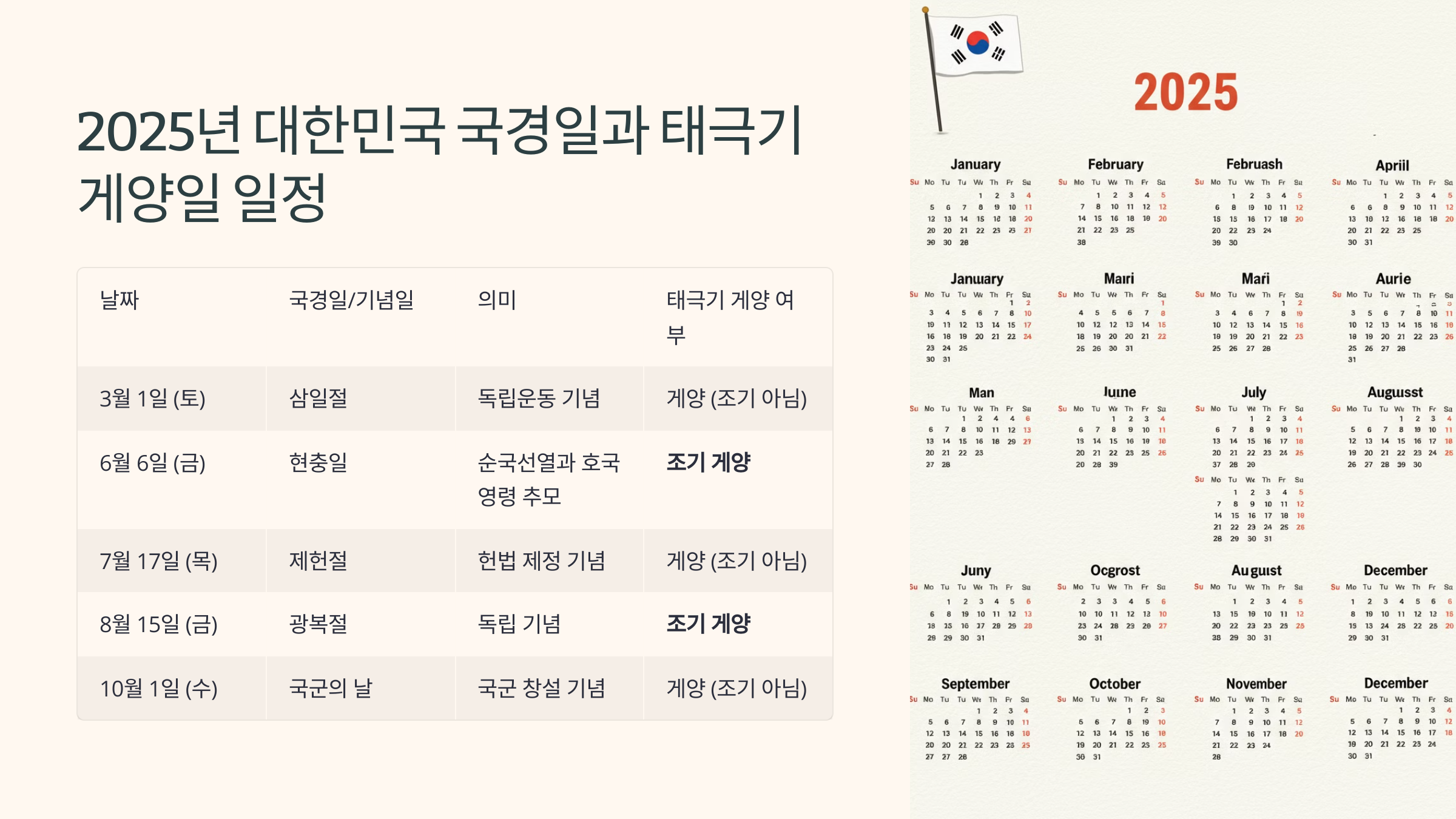 2. 2025년 대한민국 국경일과 태극기 게양일 일정