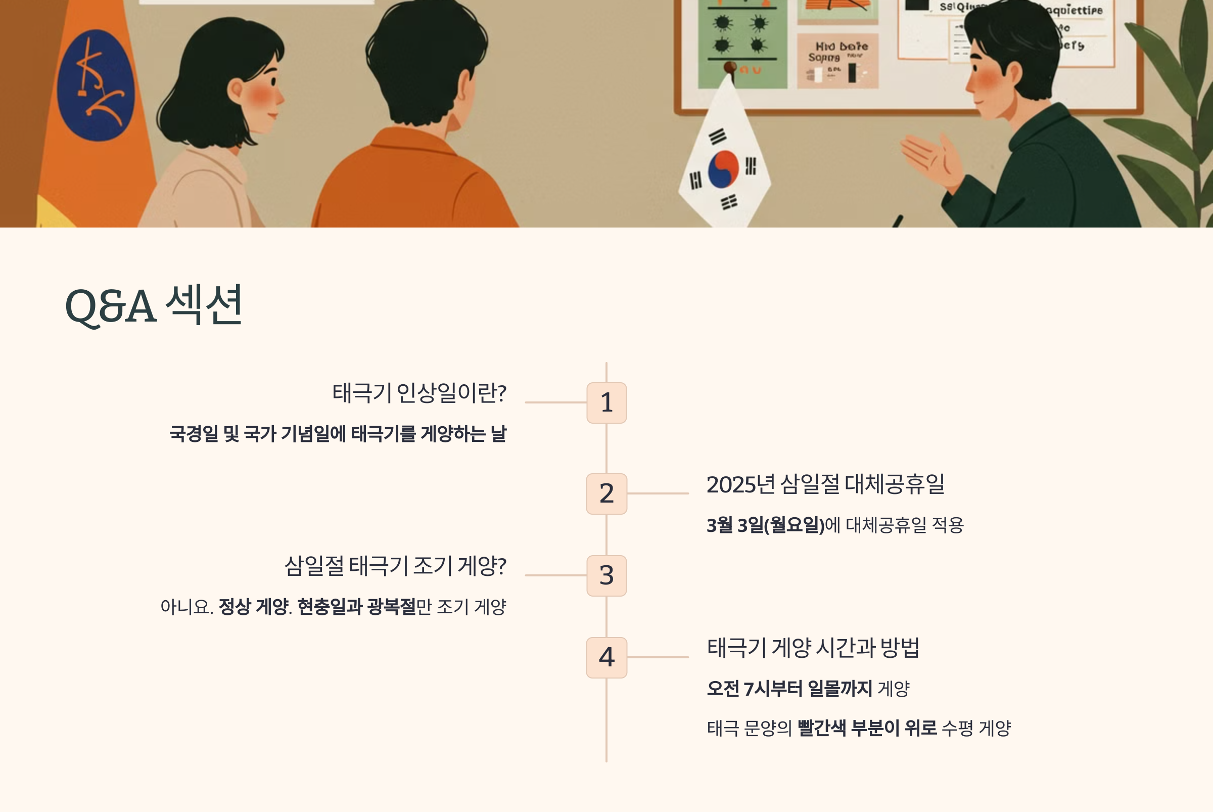 4️⃣ 태극기 게양 시 시간과 방법은 어떻게 되나요?