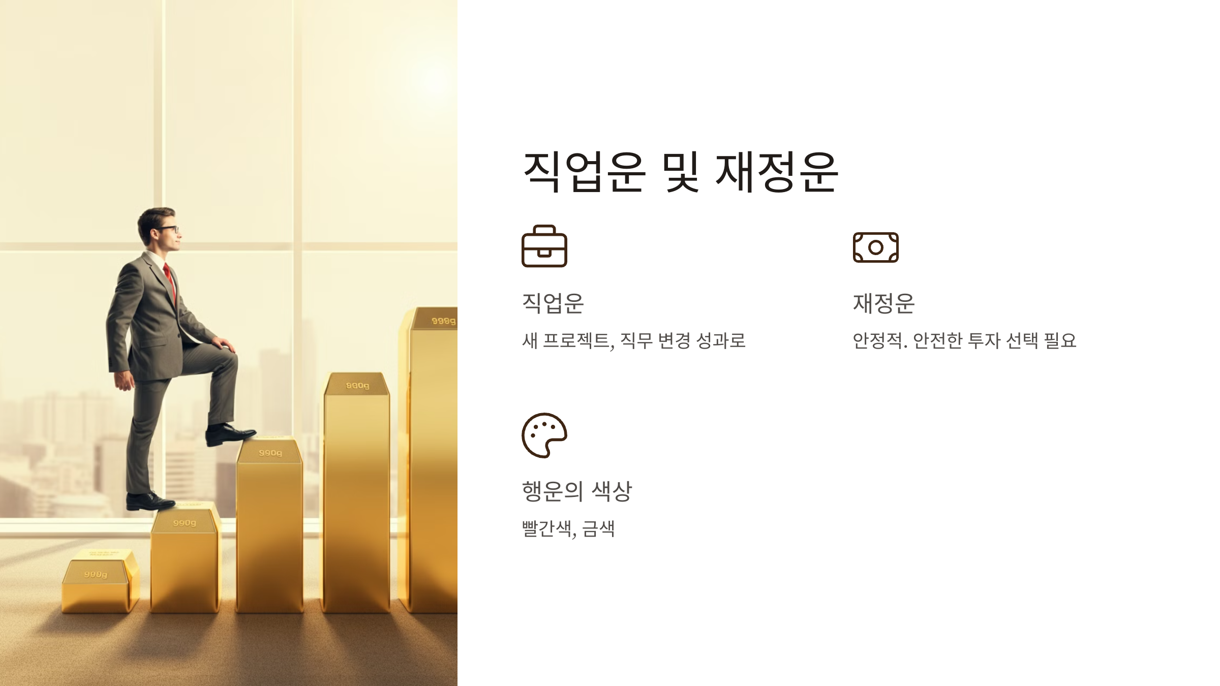 • 행운의 색상: 빨간색, 금색