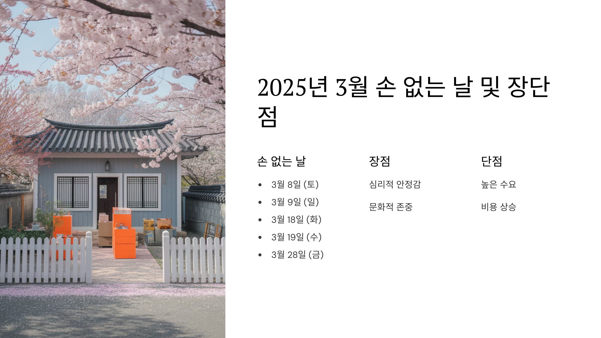 2025년 3월 손 없는 날: 이사하기 좋은 날은 언제일까?