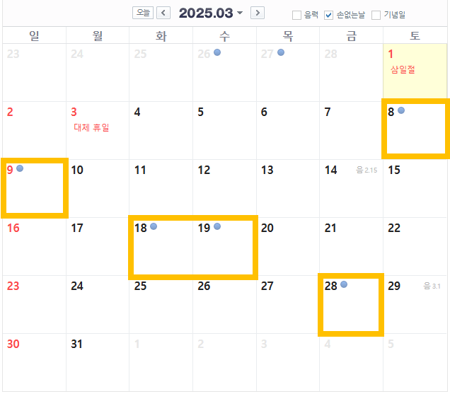 2025년 3월의 손 없는 날은 다음과 같습니다: