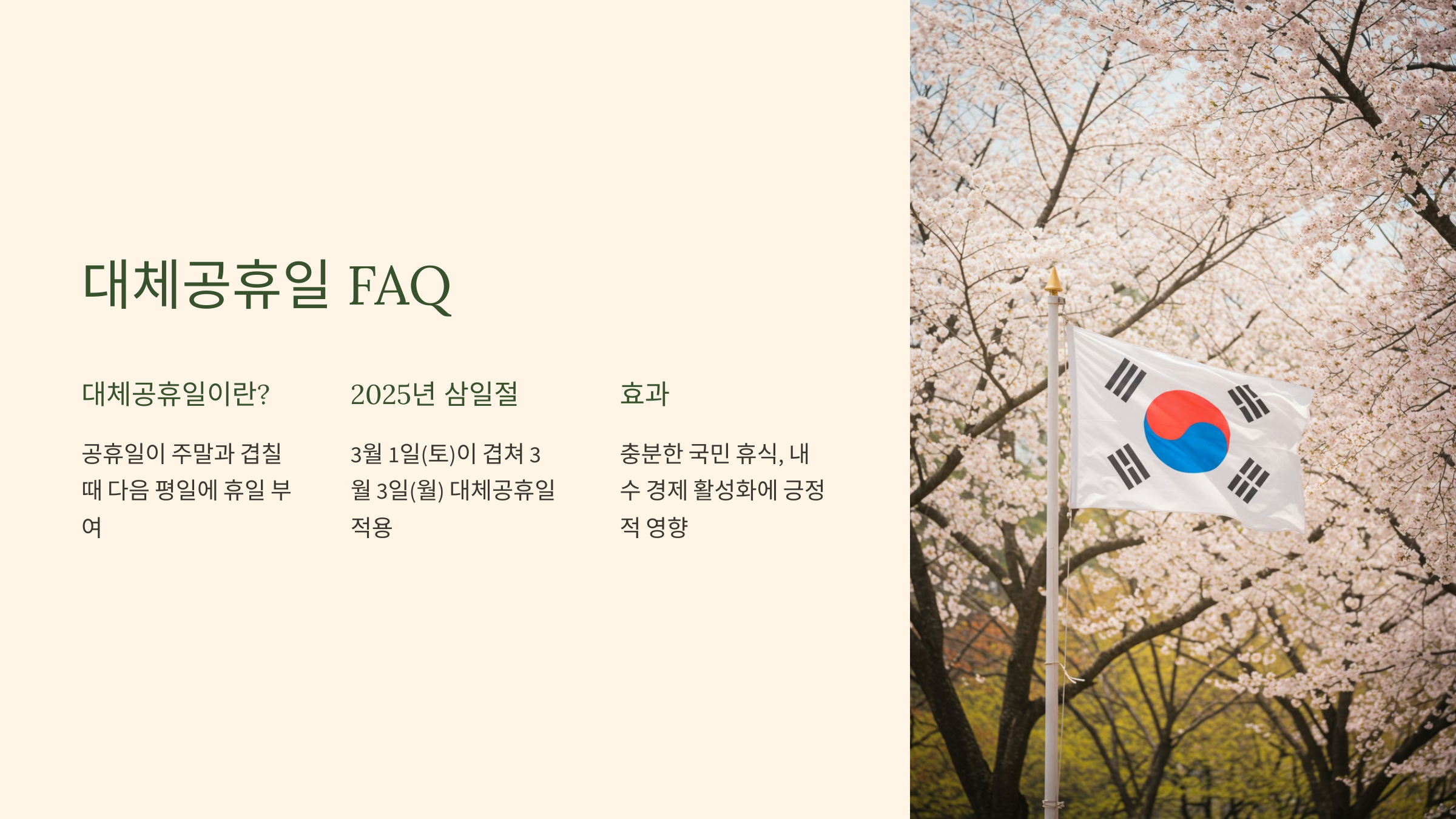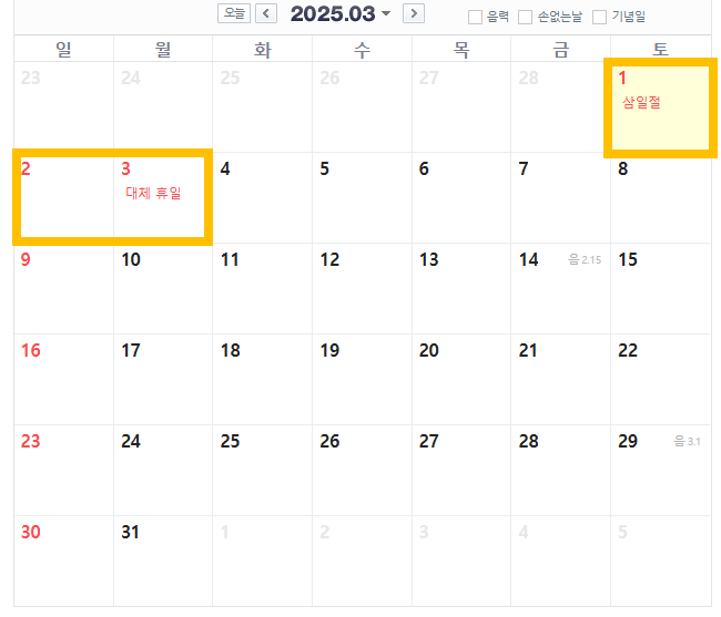 3. 2025년 3월 1일(토요일) 삼일절 대체공휴일 적용 여부