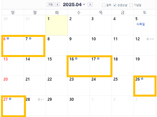 2025년 4월 손 없는 날은 음력 기준으로 계산되며 다음과 같습니다: