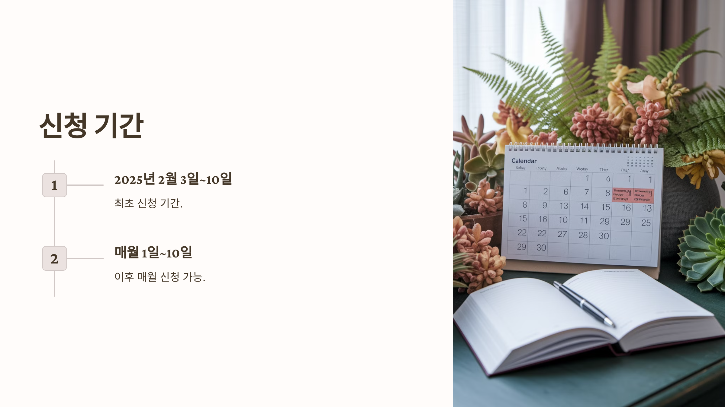 • 2025년  5월 10일까지 매달 1~10일 신청가능