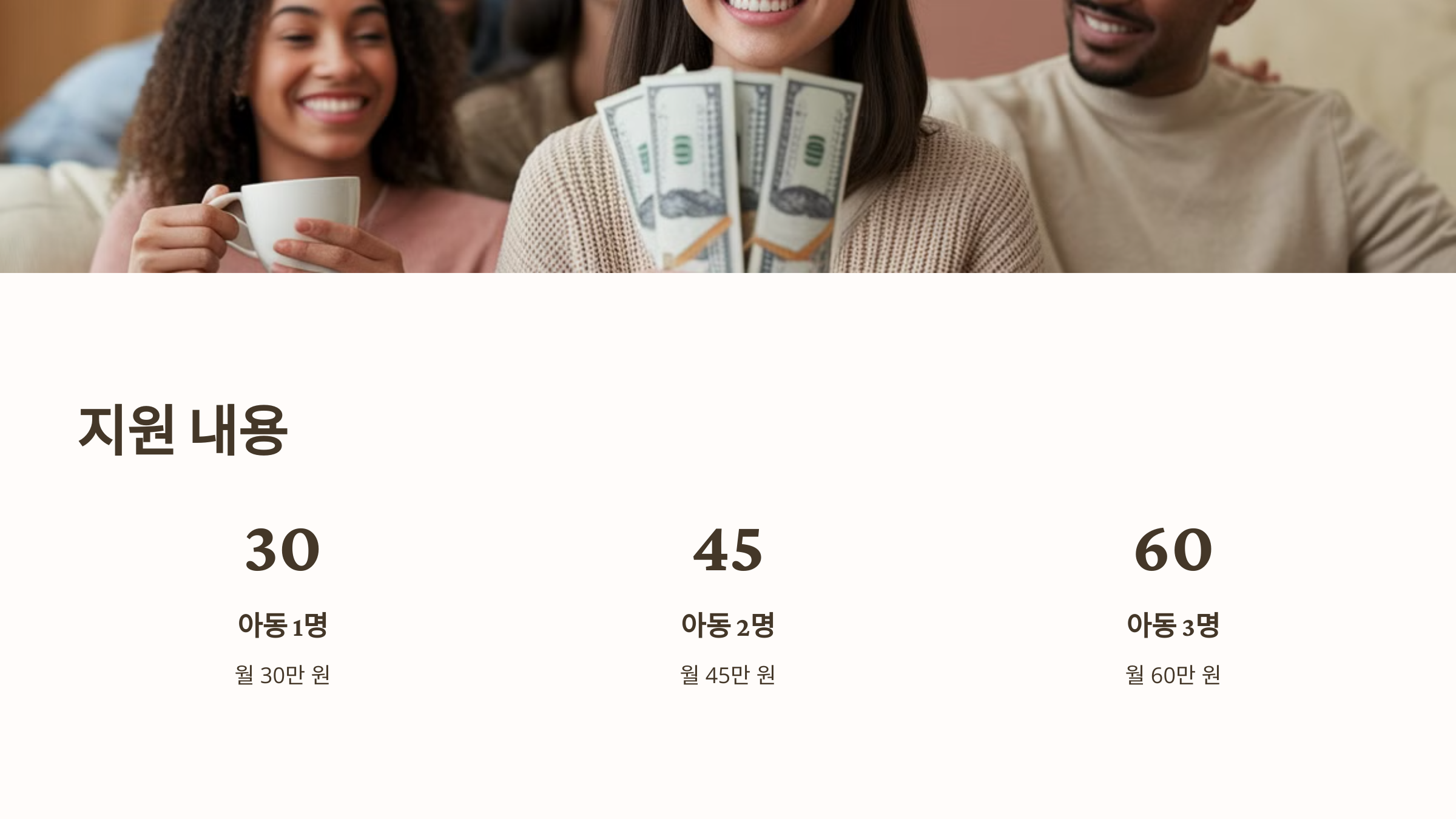 양육 가정의 소득에 상관없이 지원되며, 최대 월 60만 원까지 지원받을 수 있습니다.