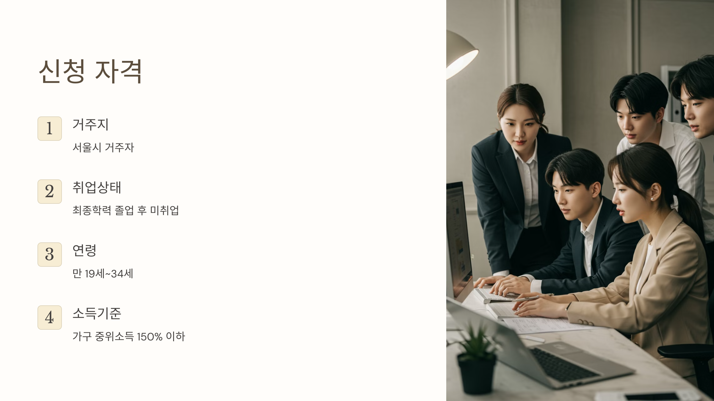 서울 청년수당을 신청하려면 다음 조건을 충족해야 합니다.