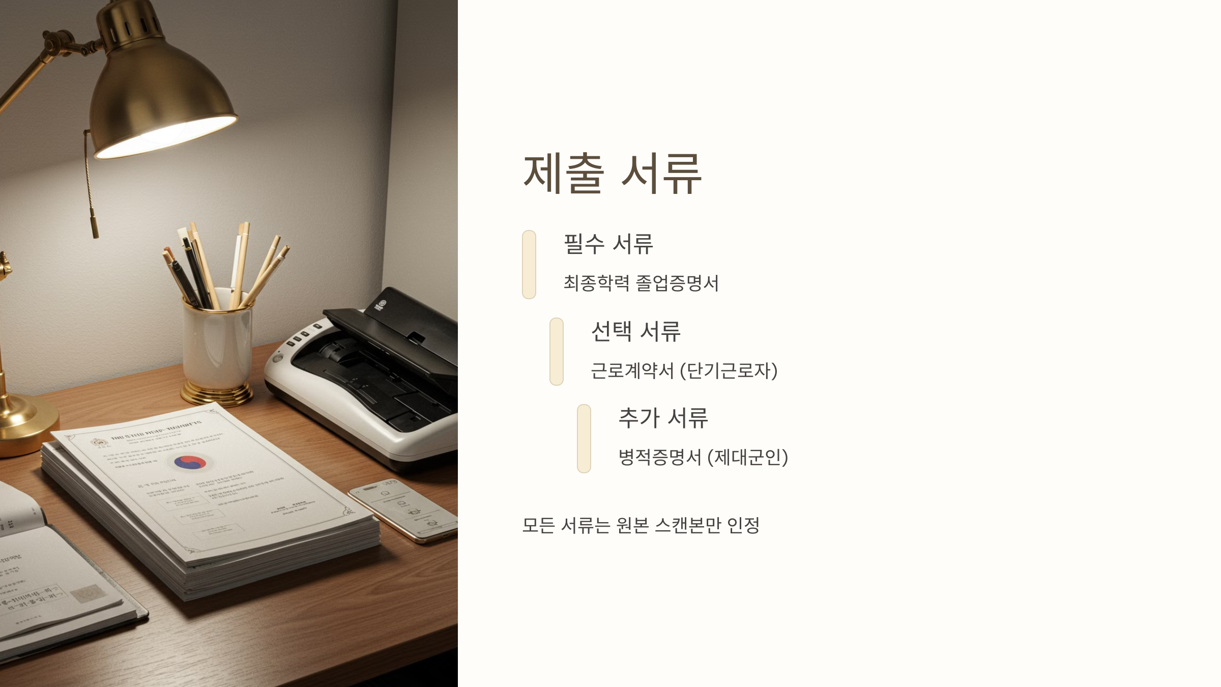 - (선택) 병적증명서 또는 주민등록초본 (35~37세 제대군인만 제출)