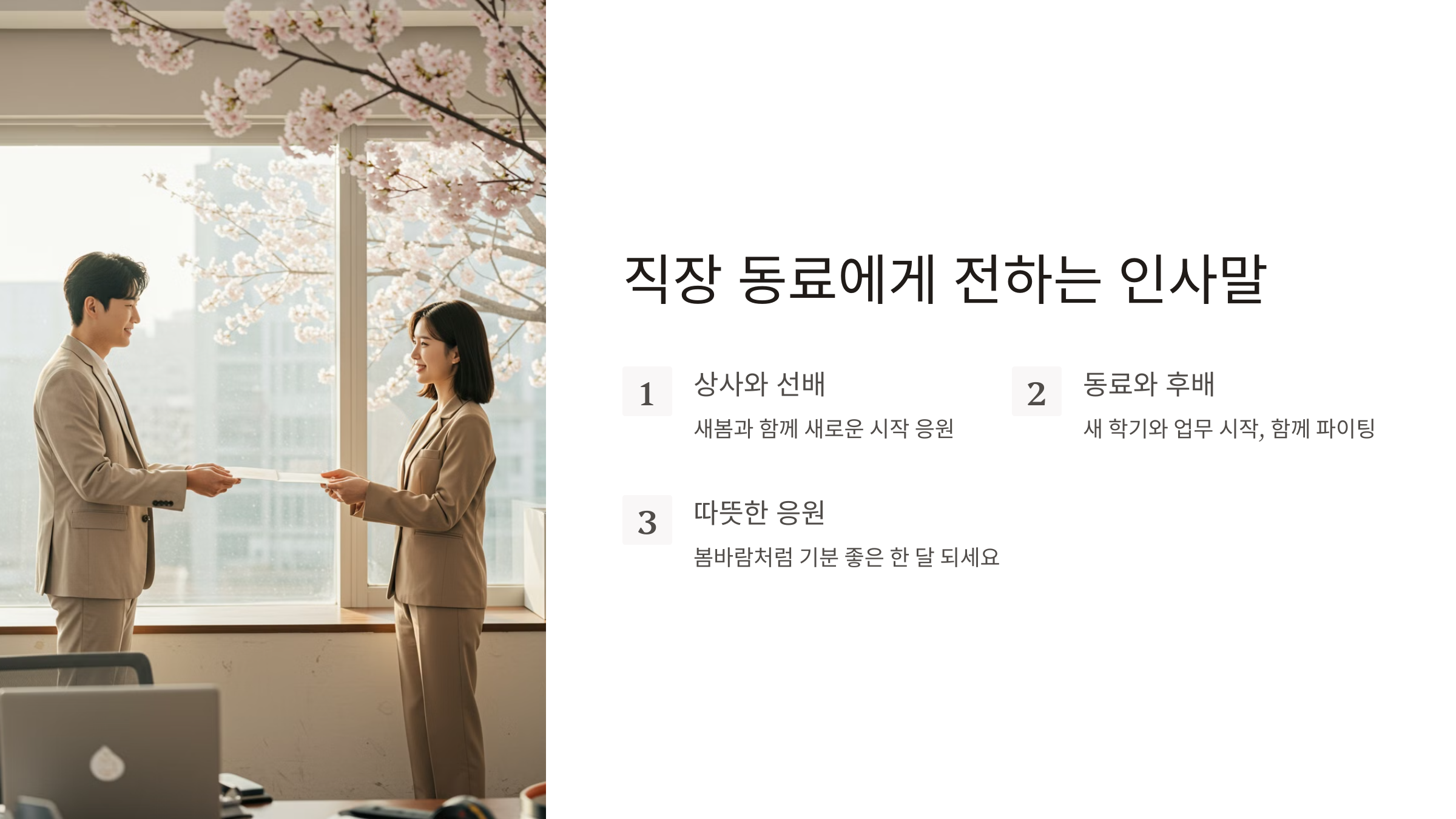 1. 직장 동료에게 전하는 3월 인사말