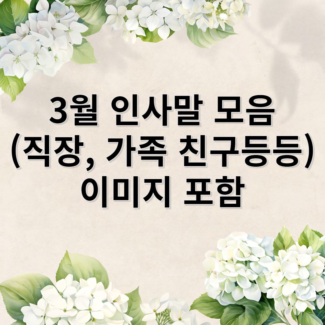 따뜻한 봄바람이 불어오는 3월은 새로운 시작을 알리는 달입니다. 겨울의 차가움이 사라지고 꽃들이 피기 시작하면서 마음도 한결 가벼워집니다. 이러한 3월에는 직장 동료, 친구, 가족에게 따뜻한 인사말과 메시지를 전하며 관계를 더욱 돈독히 할 수 있습니다. 간단한 한마디가 상대방에게 큰 힘이 될 수 있기에 상황별 맞춤 인사말과 이미지 메시지를 준비했습니다.