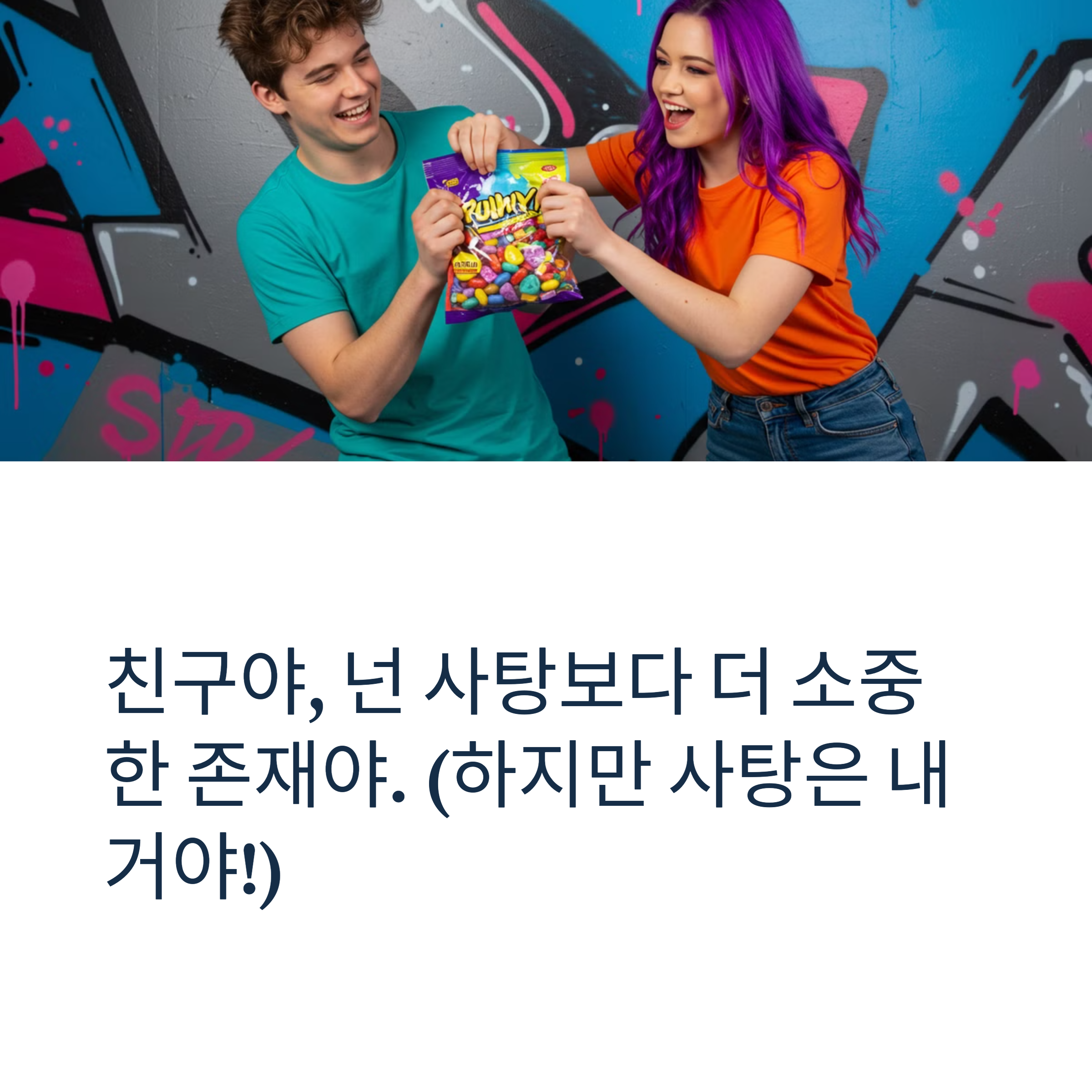 - "친구야, 넌 사탕보다 더 소중한 존재야. (하지만 사탕은 내 거야!)"