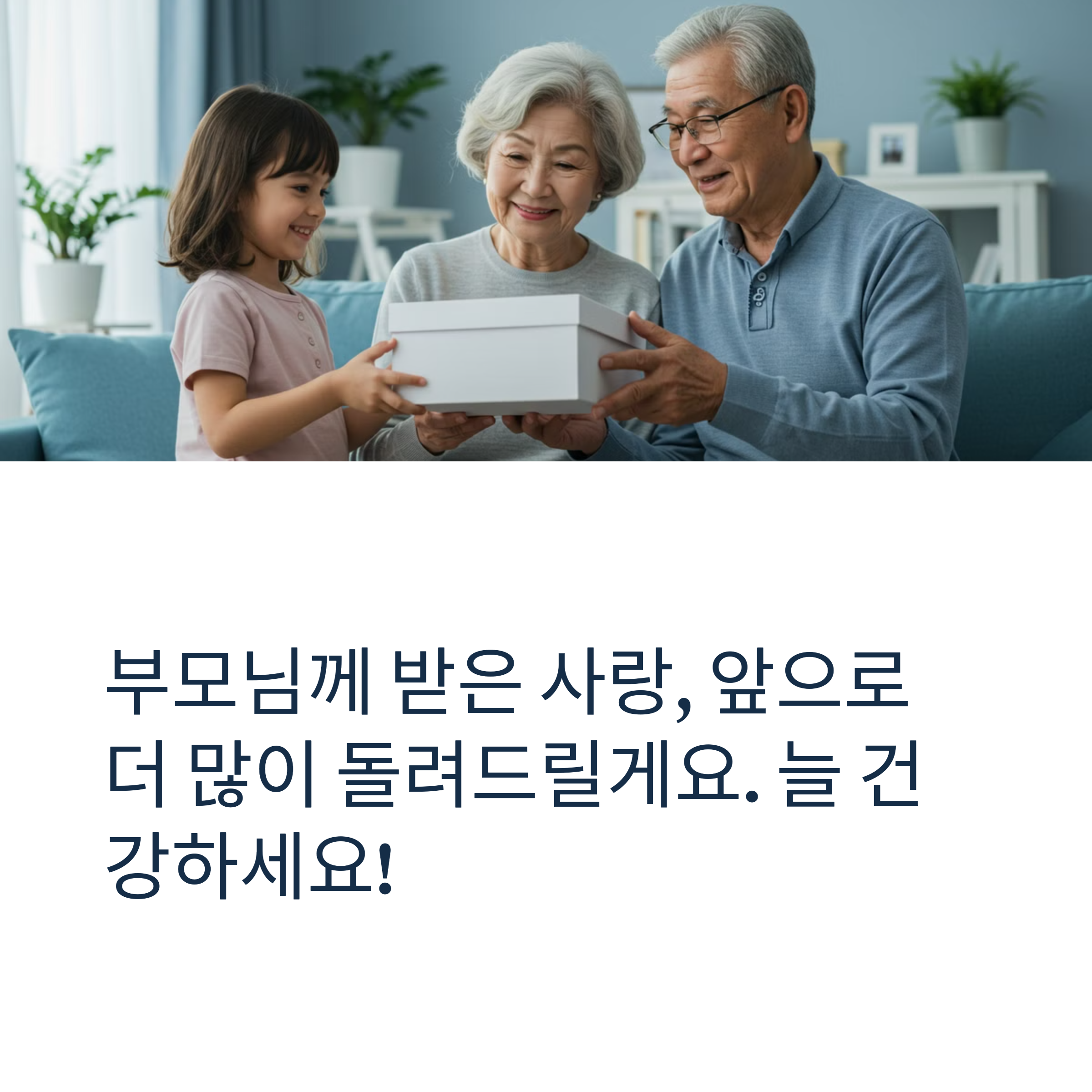 - "부모님께 받은 사랑, 앞으로 더 많이 돌려드릴게요. 늘 건강하세요!"