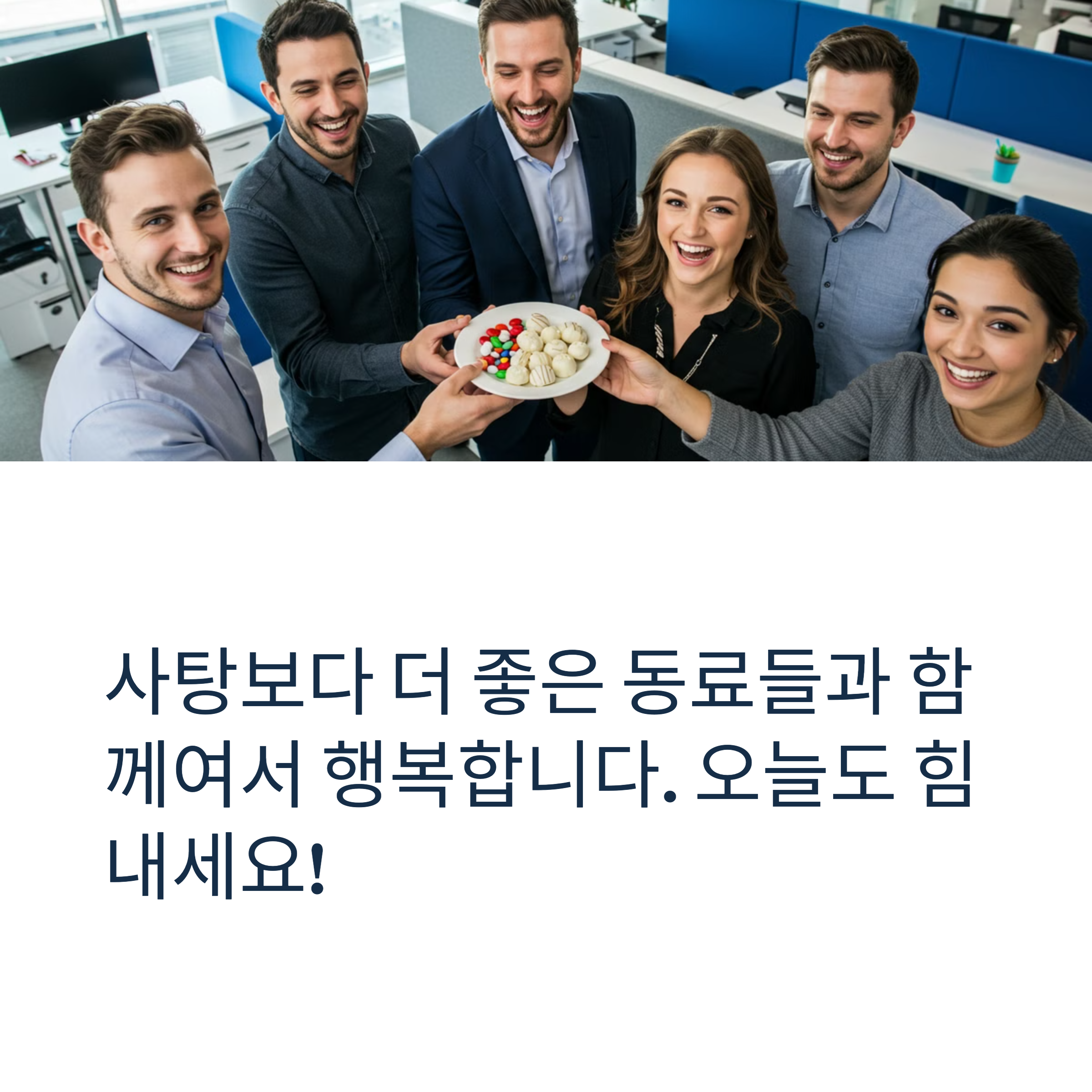 - "사탕보다 더 좋은 동료들과 함께여서 행복합니다. 오늘도 힘내세요!"