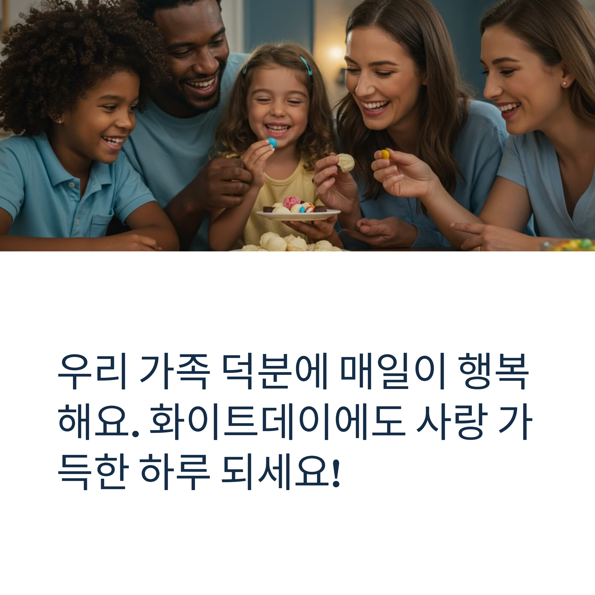 - "우리 가족 덕분에 매일이 행복해요. 화이트데이에도 사랑 가득한 하루 되세요!"