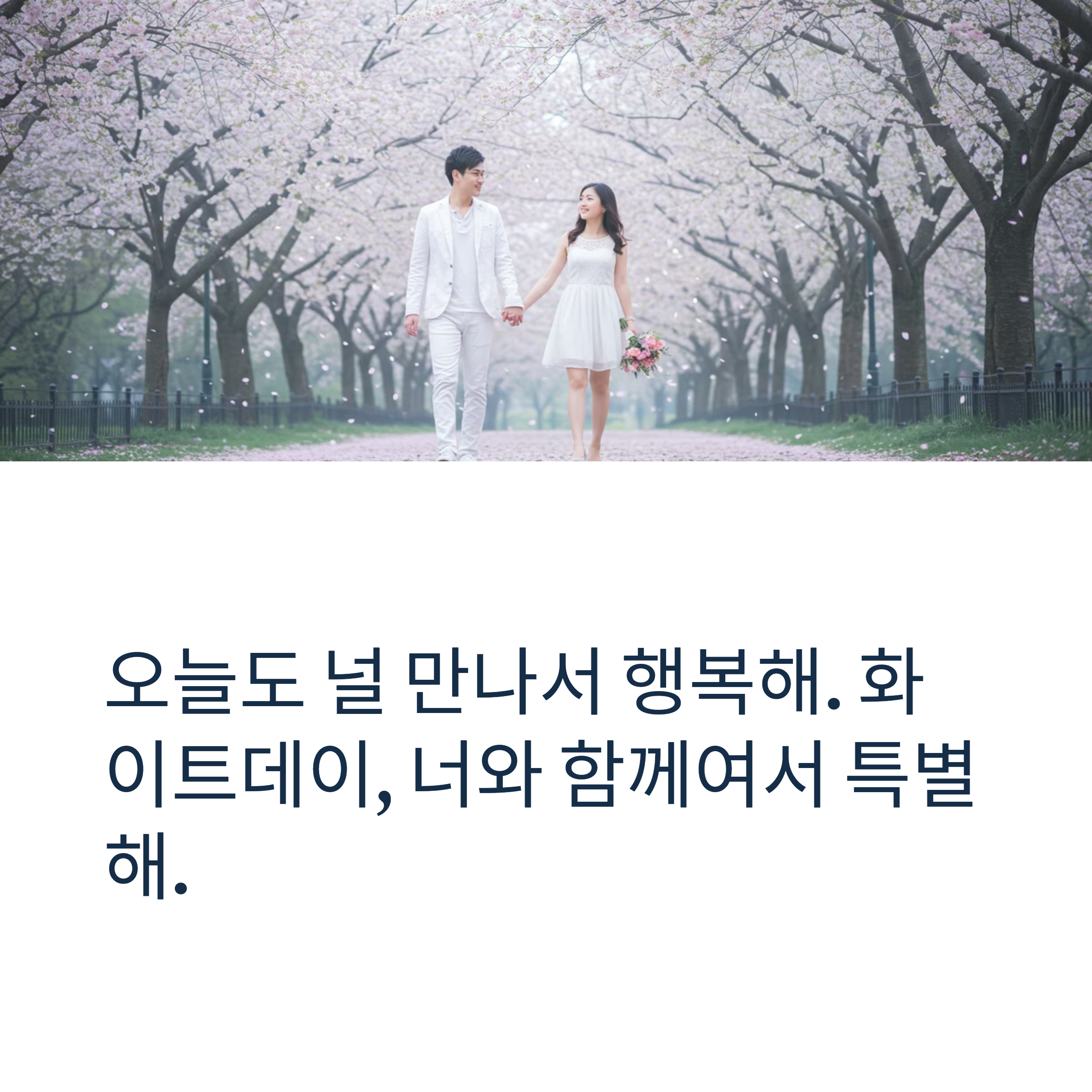 - "오늘도 널 만나서 행복해. 화이트데이, 너와 함께여서 특별해."