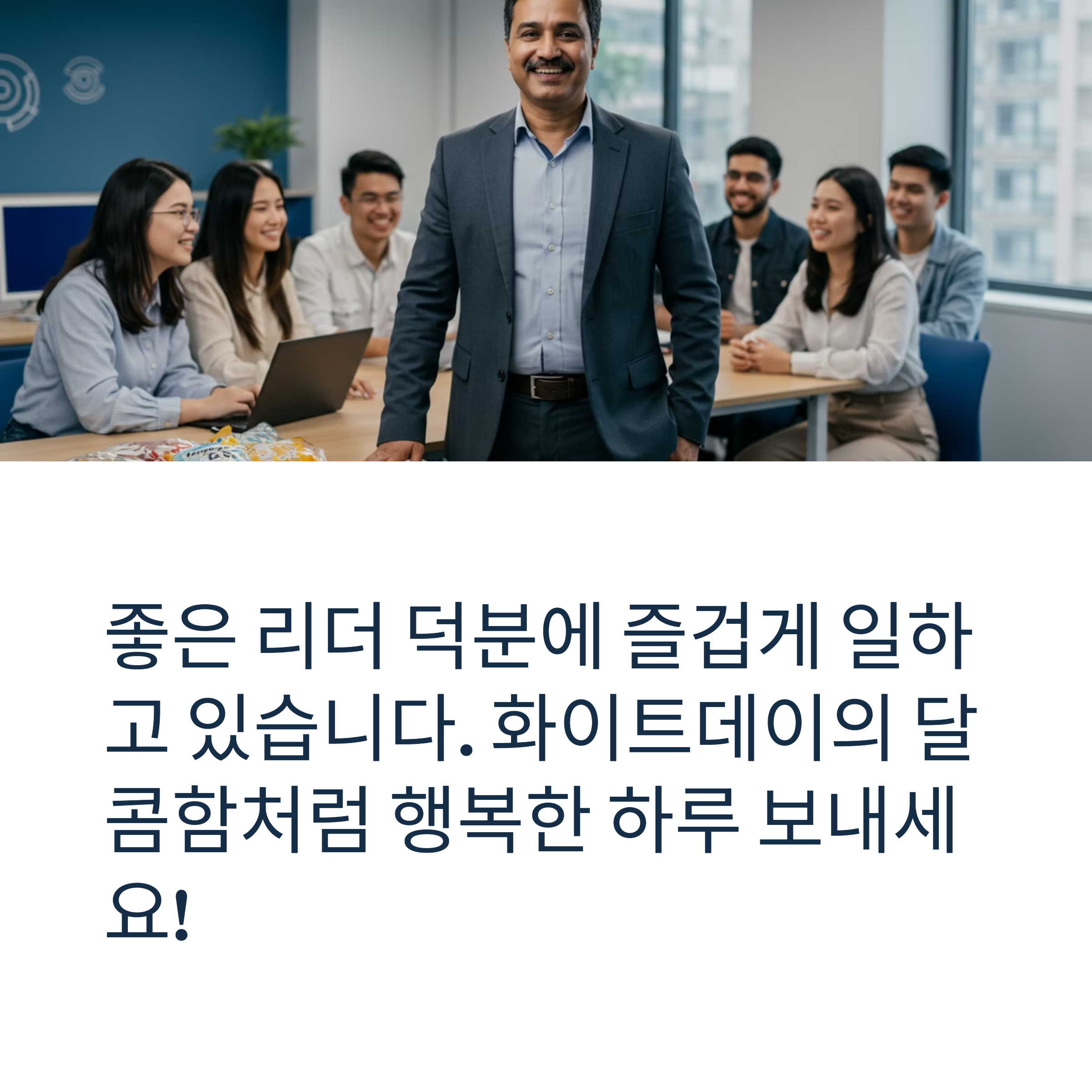 - "좋은 리더 덕분에 즐겁게 일하고 있습니다. 화이트데이의 달콤함처럼 행복한 하루 보내세요!"
