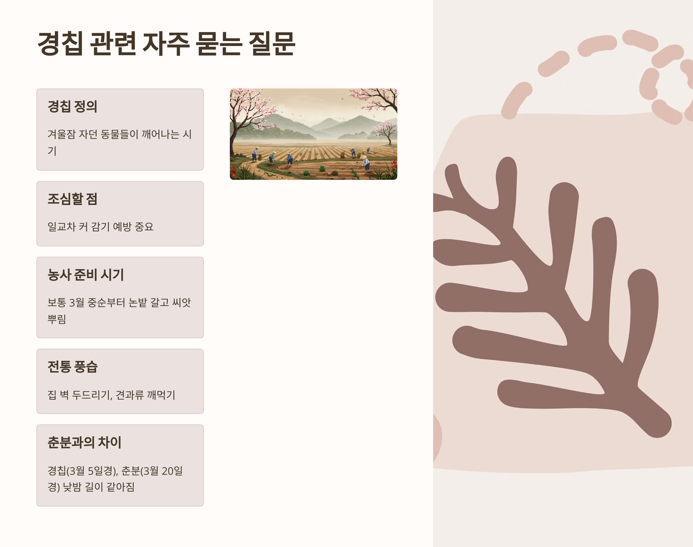 | 경칩(驚蟄) | 3월 5일경 | 동물들이 겨울잠에서 깨어남 |