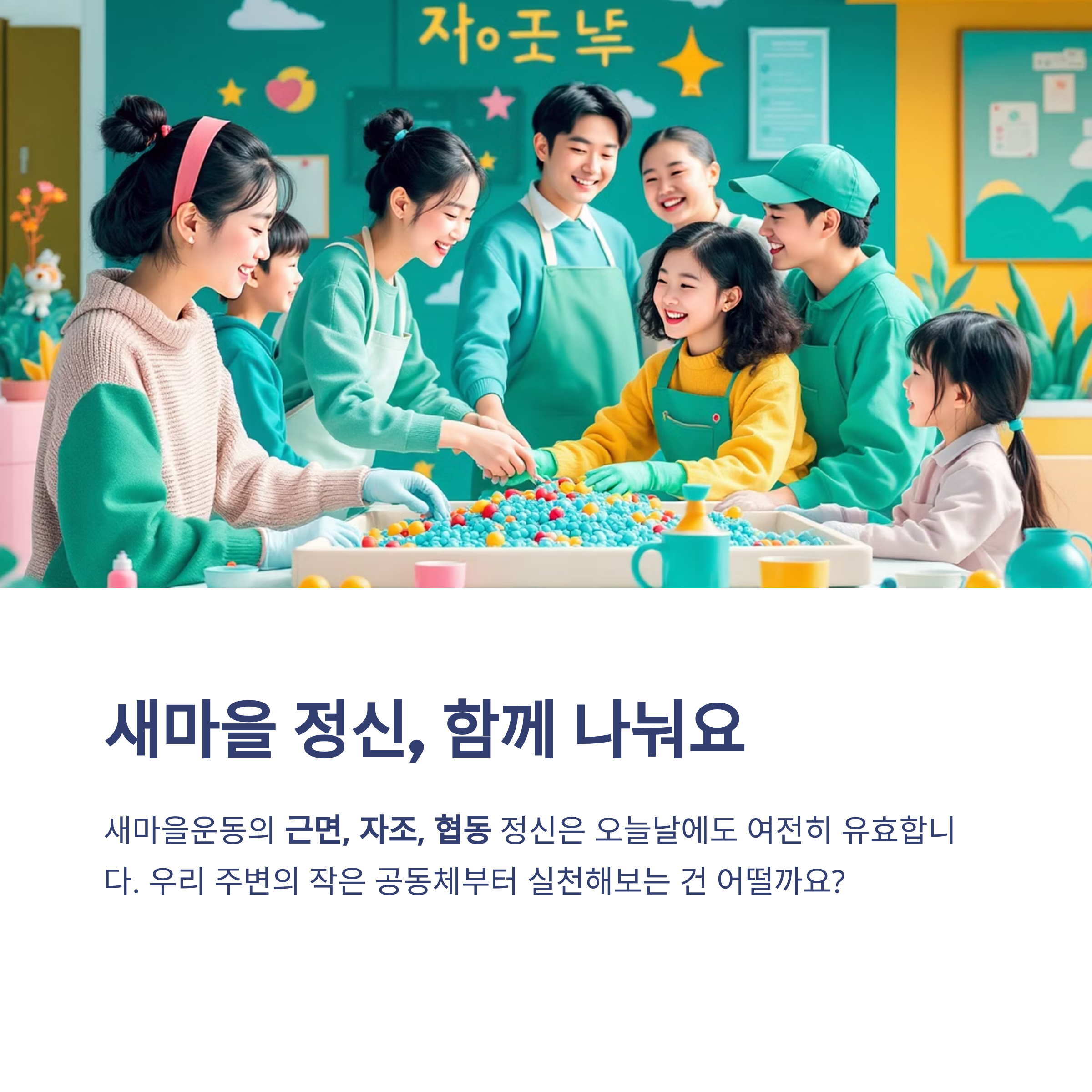 새마을운동은 단순한 과거의 추억이 아닙니다. 그것은 대한민국이 전 세계에 자랑할 수 있는 ‘자립형 발전 모델’이자, 공동체의 힘을 증명한 역사적 자산입니다.