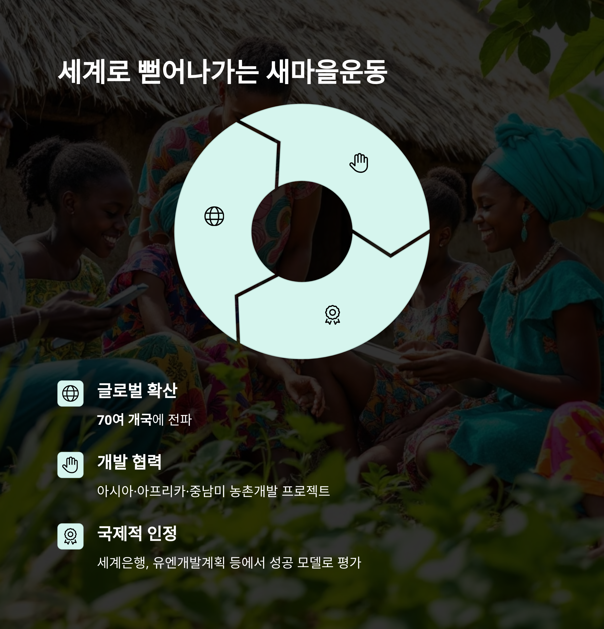 이러한 국제적 확산은 단지 개발 지원이 아니라, ‘주민 스스로 변화할 수 있다는 믿음’을 전파하는 일입니다.