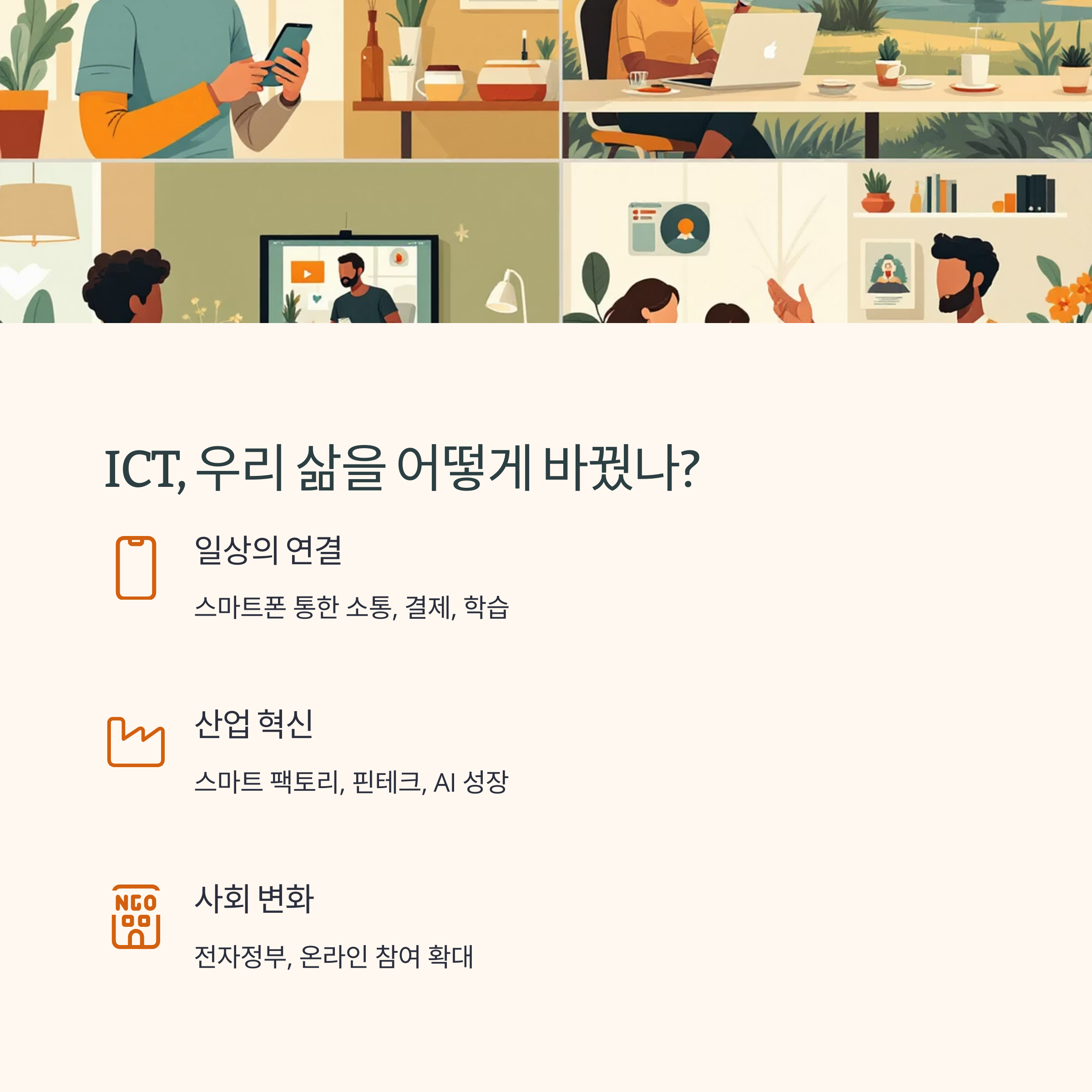 2020년대 이후 ICT는 단순한 기술이 아니라, 사회 시스템 전체를 재구성하는 패러다임으로 작용하고 있습니다.