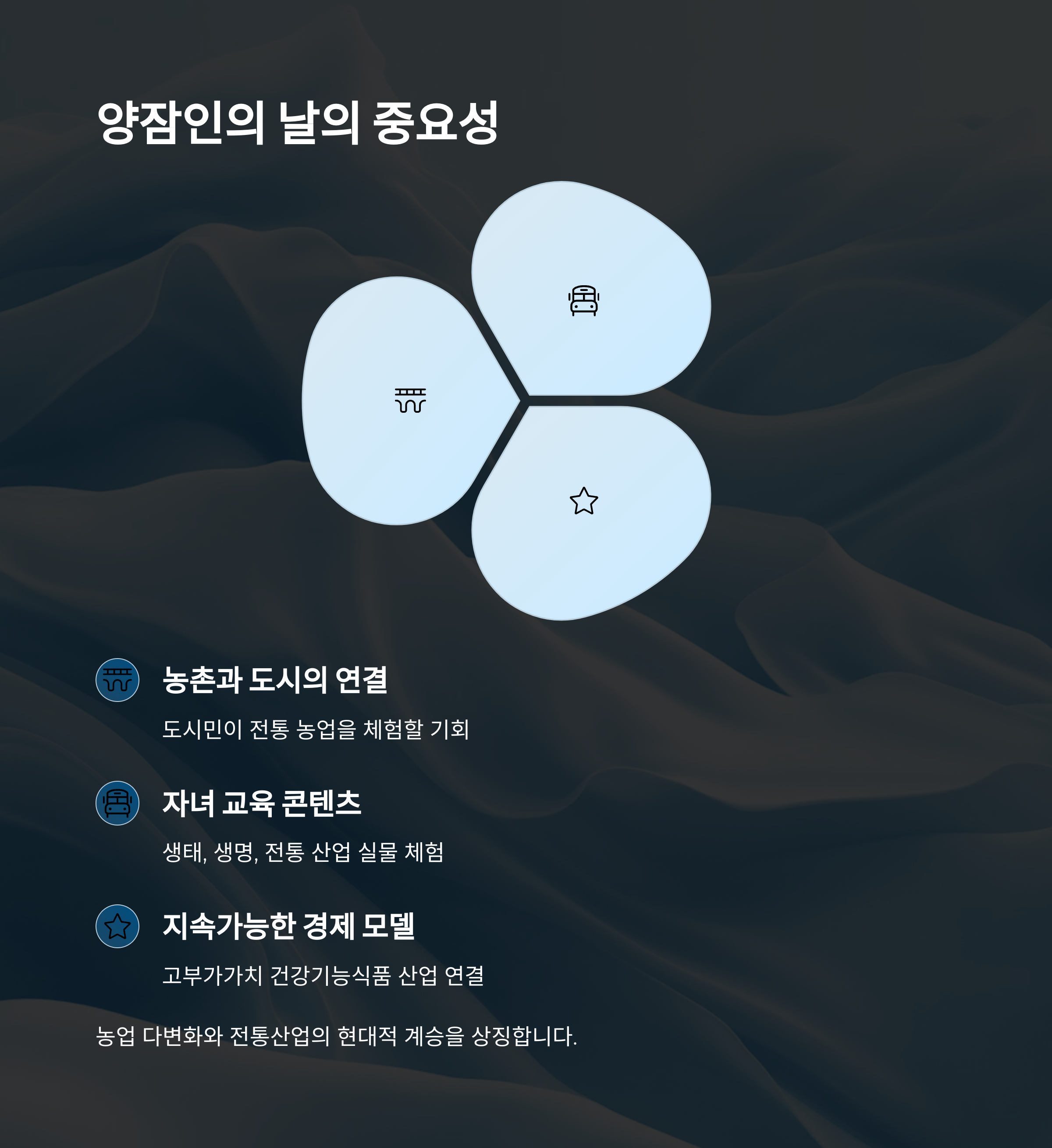 • 농촌과 도시의 연결: 도시민이 전통 농업을 이해하고 체험할 기회 제공