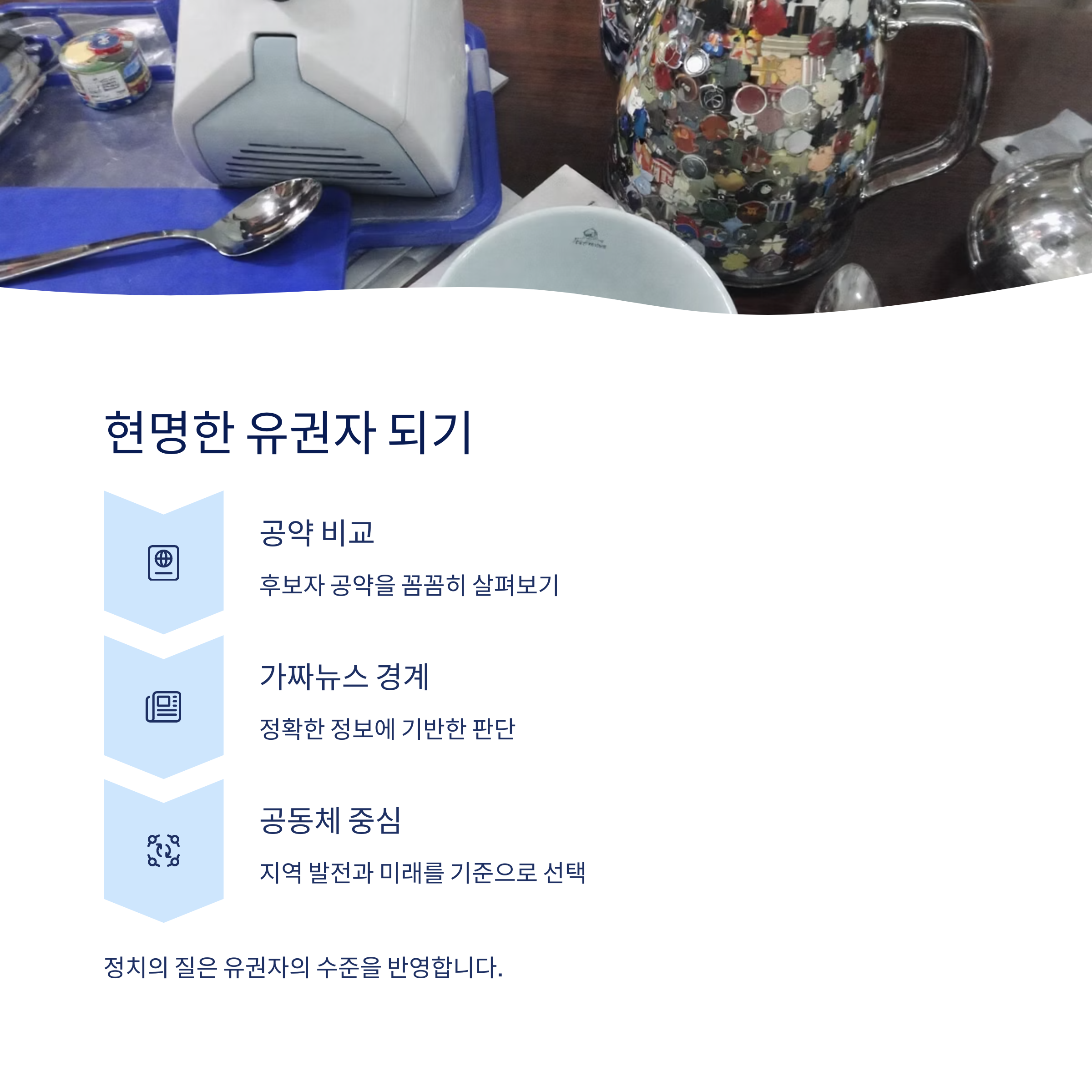 많은 사람들이 “정치인들이 다 거기서 거기”라고 말합니다. 하지만 그들을 뽑은 것은 결국 유권자의 선택입니다.