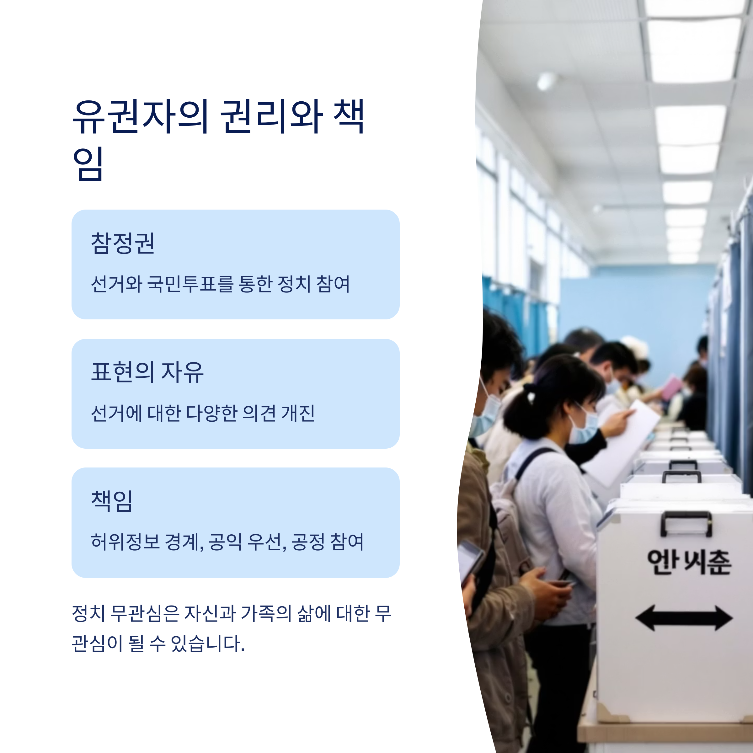 정치 무관심은 결국 자신과 가족의 삶에 대한 무관심이 될 수 있습니다.