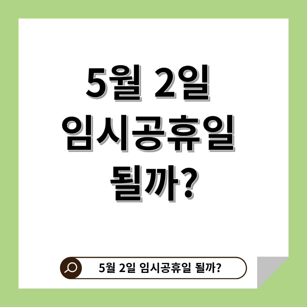 5월 2일이 임시공휴일로 지정될 가능성은 현재로서는 낮습니다. 정부의 공식 발표가 나오기 전까지는 확정된 것이 아닙니다.