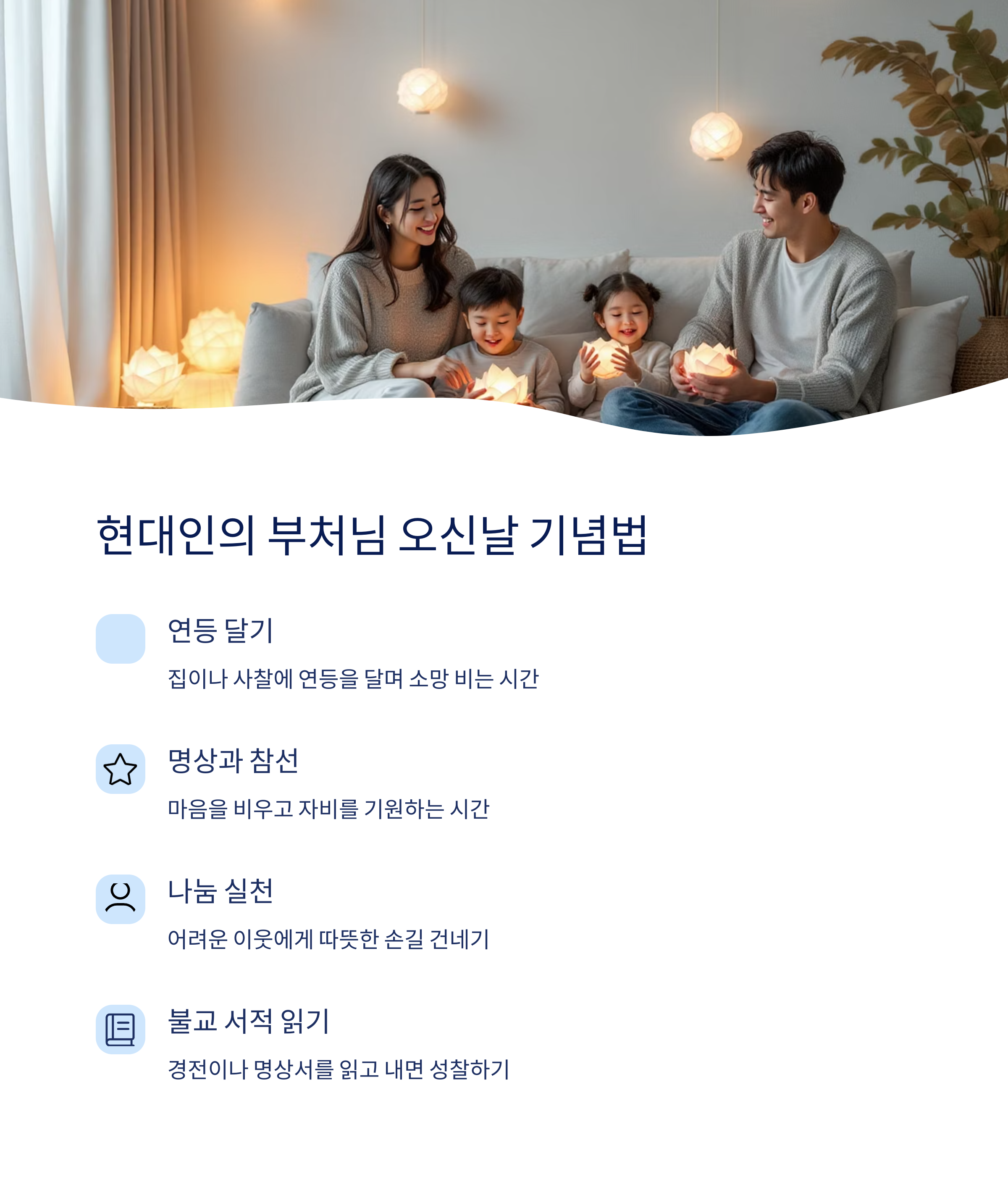 - 가족과 함께 기념: 부모님, 자녀와 함께 사찰 방문이나 나눔 활동 참여