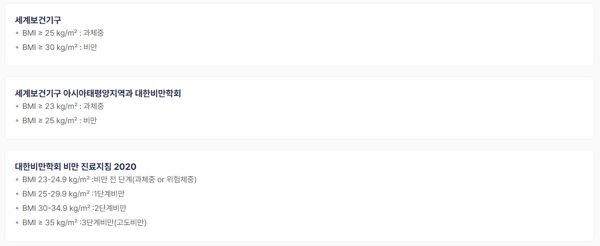 BMI 수치를 통해 자신의 비만도를 판단할 수 있습니다. 세계보건기구(WHO) 기준에 따르면, 다음과 같이 분류됩니다:
