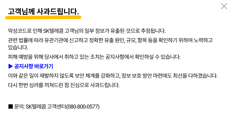 SK텔레콤은 4월 19일 밤, 악성 코드에 의한 시스템 해킹으로 유심 관련 정보 일부가 외부로 유출된 정황을 포착했습니다. 특히 LTE, 5G 이용 고객의 음성 인증 서버가 대상이 되었습니다.